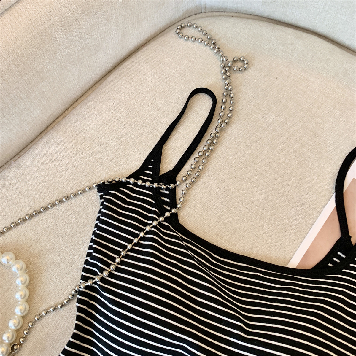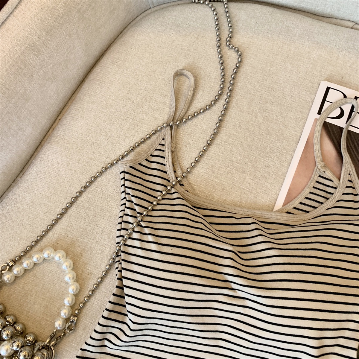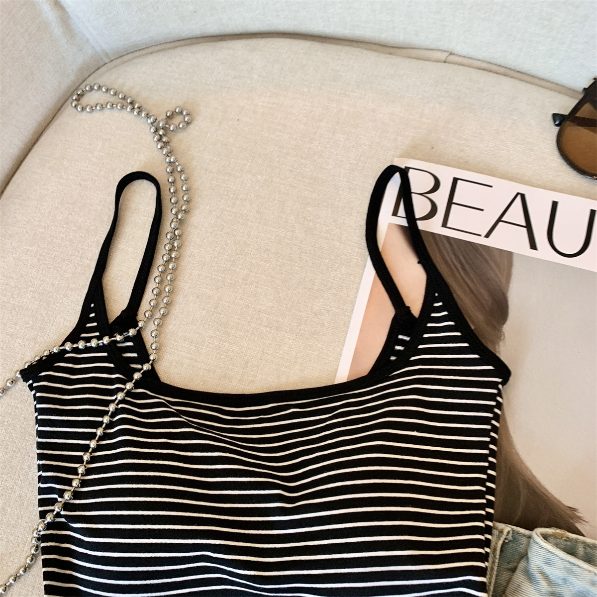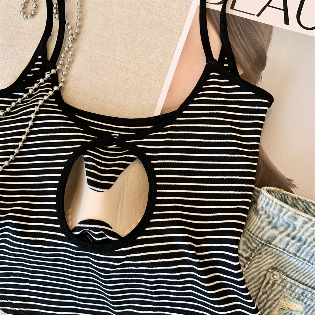 Повседневная и модная полосатая майка в стиле чистой страсти с фиксированной чашкой для похудения и универсальный топ