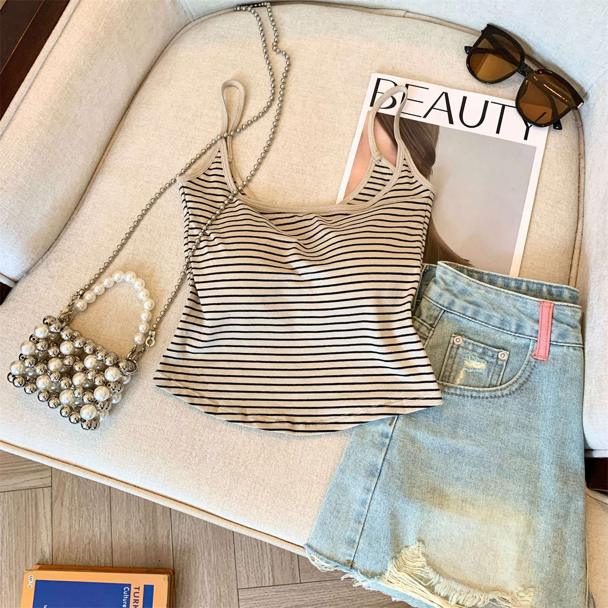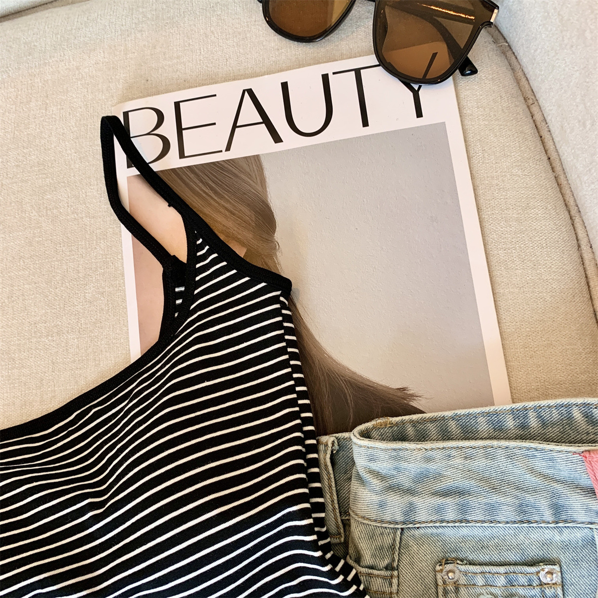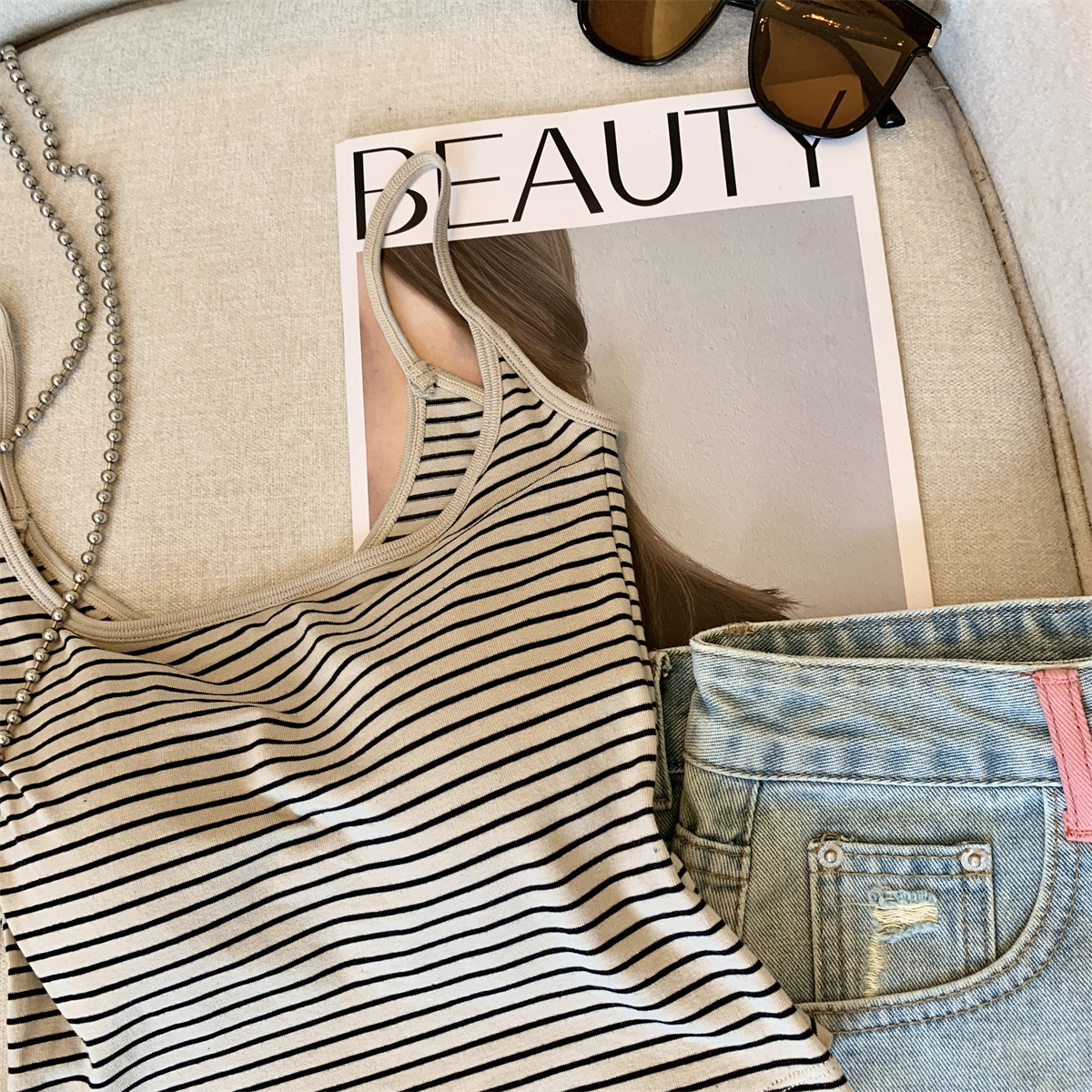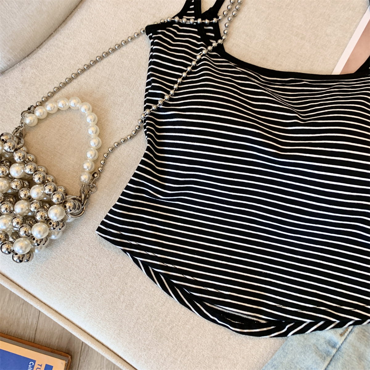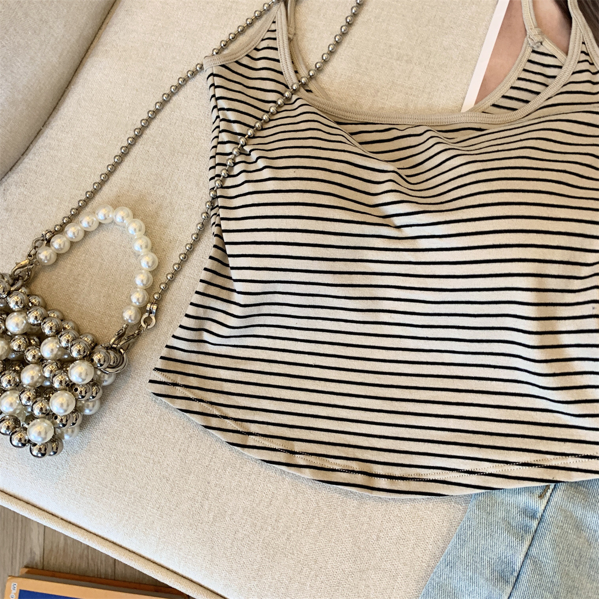 Повседневная и модная полосатая майка в стиле чистой страсти с фиксированной чашкой для похудения и универсальный топ