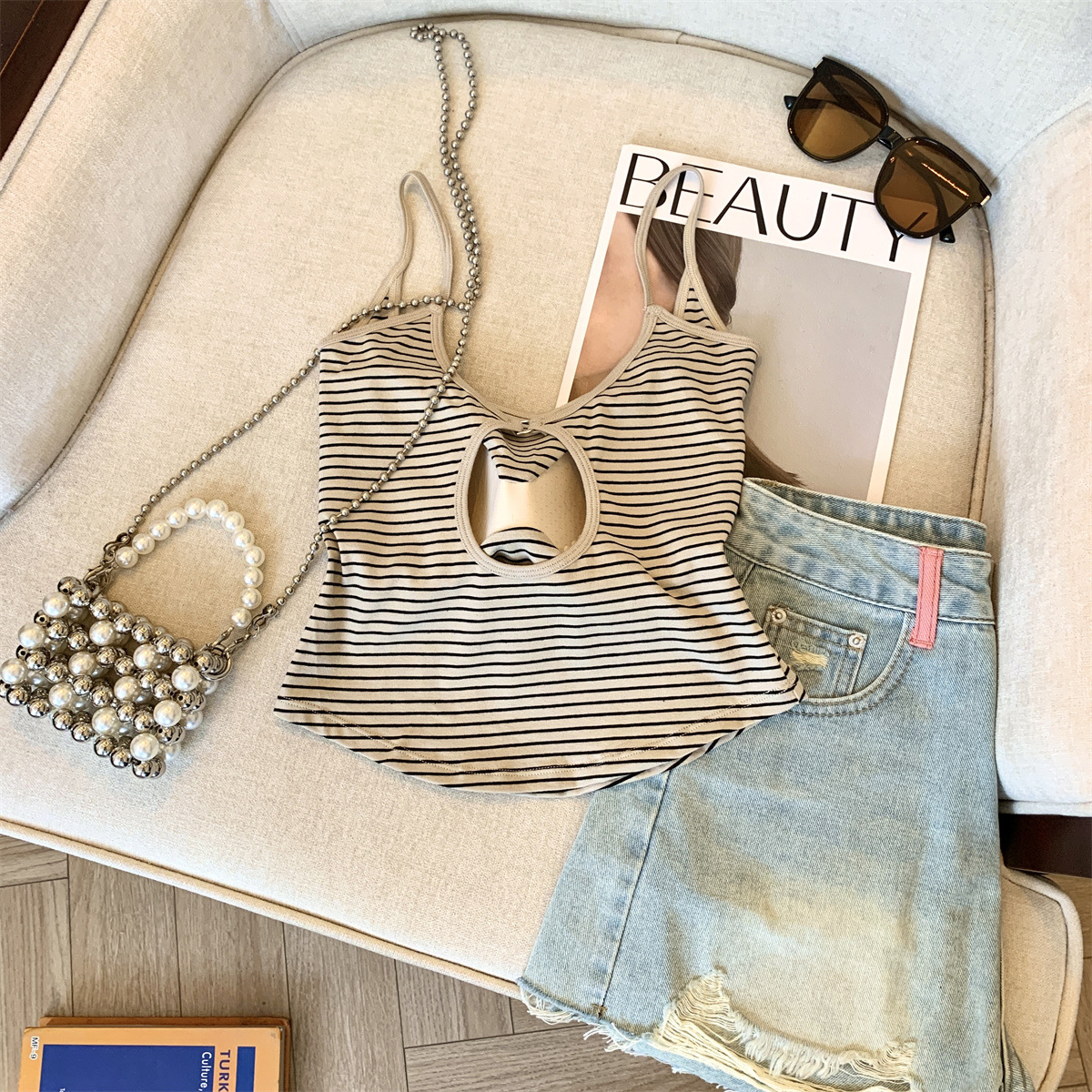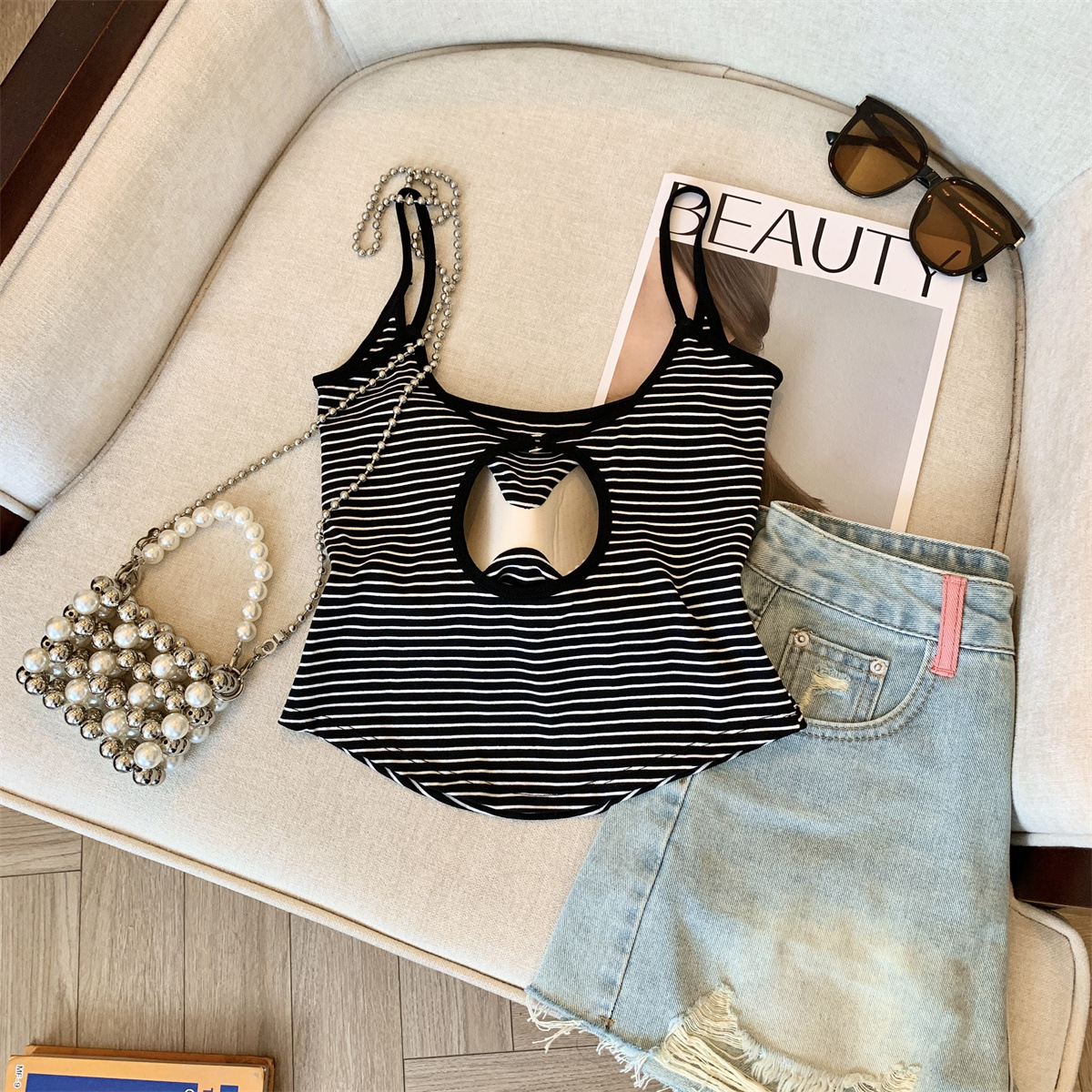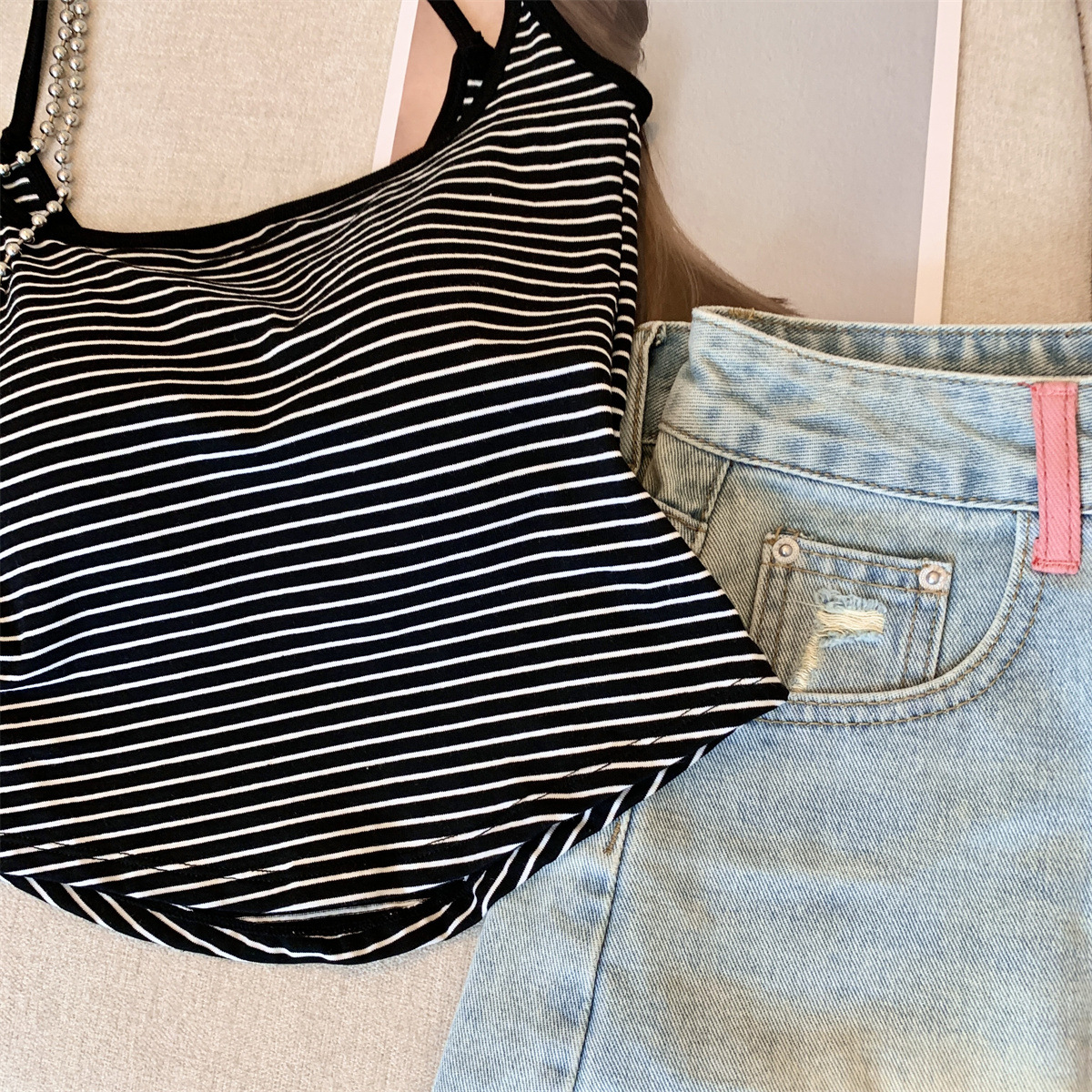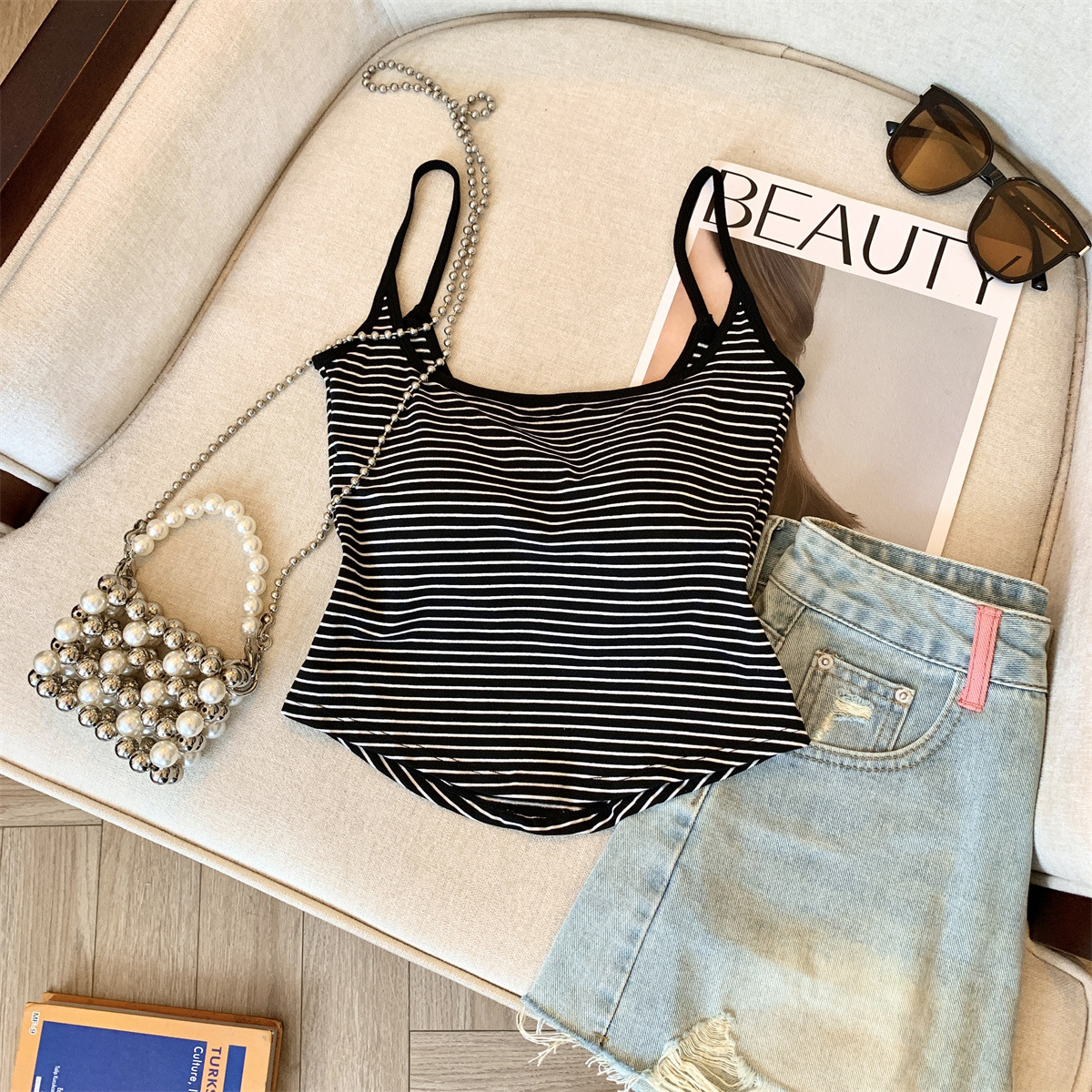 Повседневная и модная полосатая майка в стиле чистой страсти с фиксированной чашкой для похудения и универсальный топ