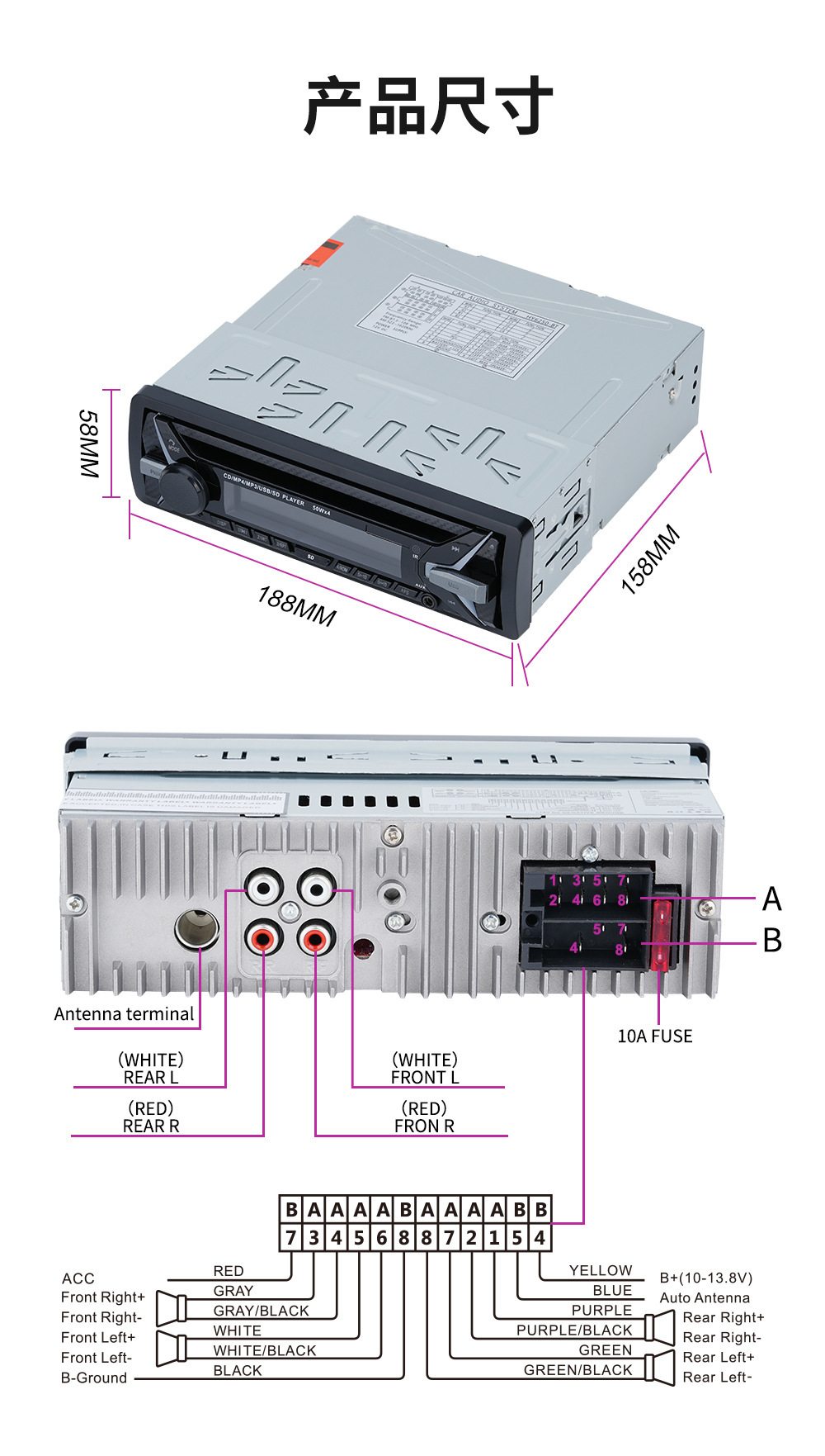 Автомобильный CD/DVD/VCD проигрыватель, Bluetooth-карта, радио, центральная аудиосистема для автомобиля, модификация звука