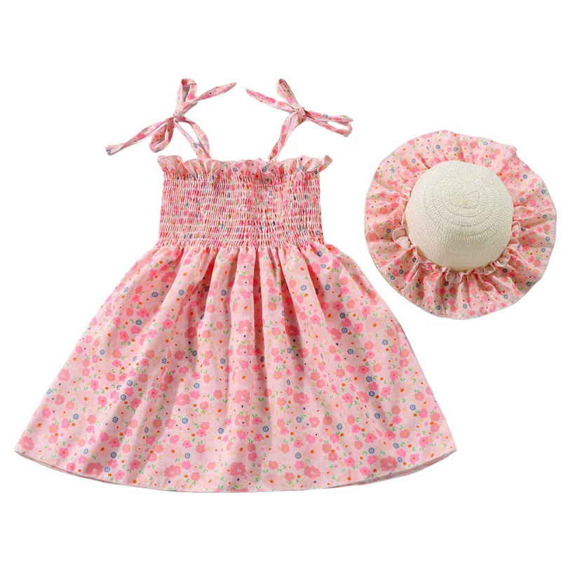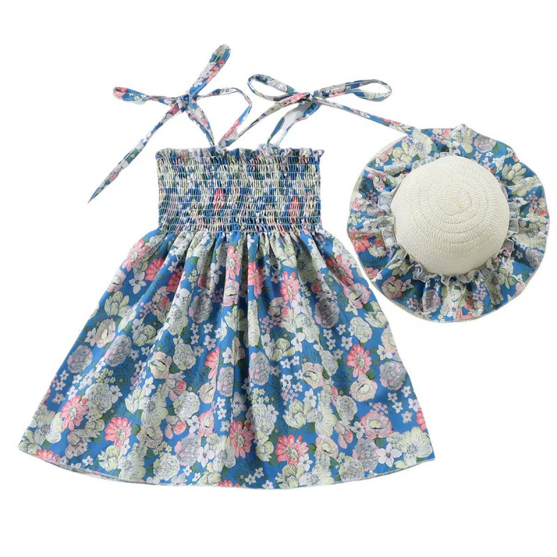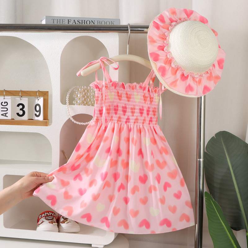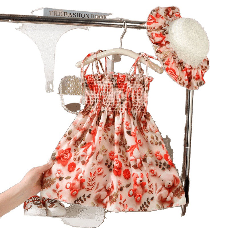 2025 модное платье для девочек с цветочным принтом, стильное летнее платье-принцесса без рукавов с тонкими бретелями для маленьких детей