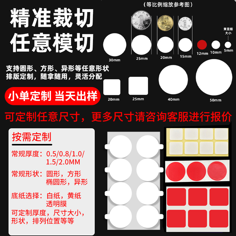 模切批发圆形亚克力双面胶纳米无痕胶汽车摆件圆点胶强粘透明点胶
