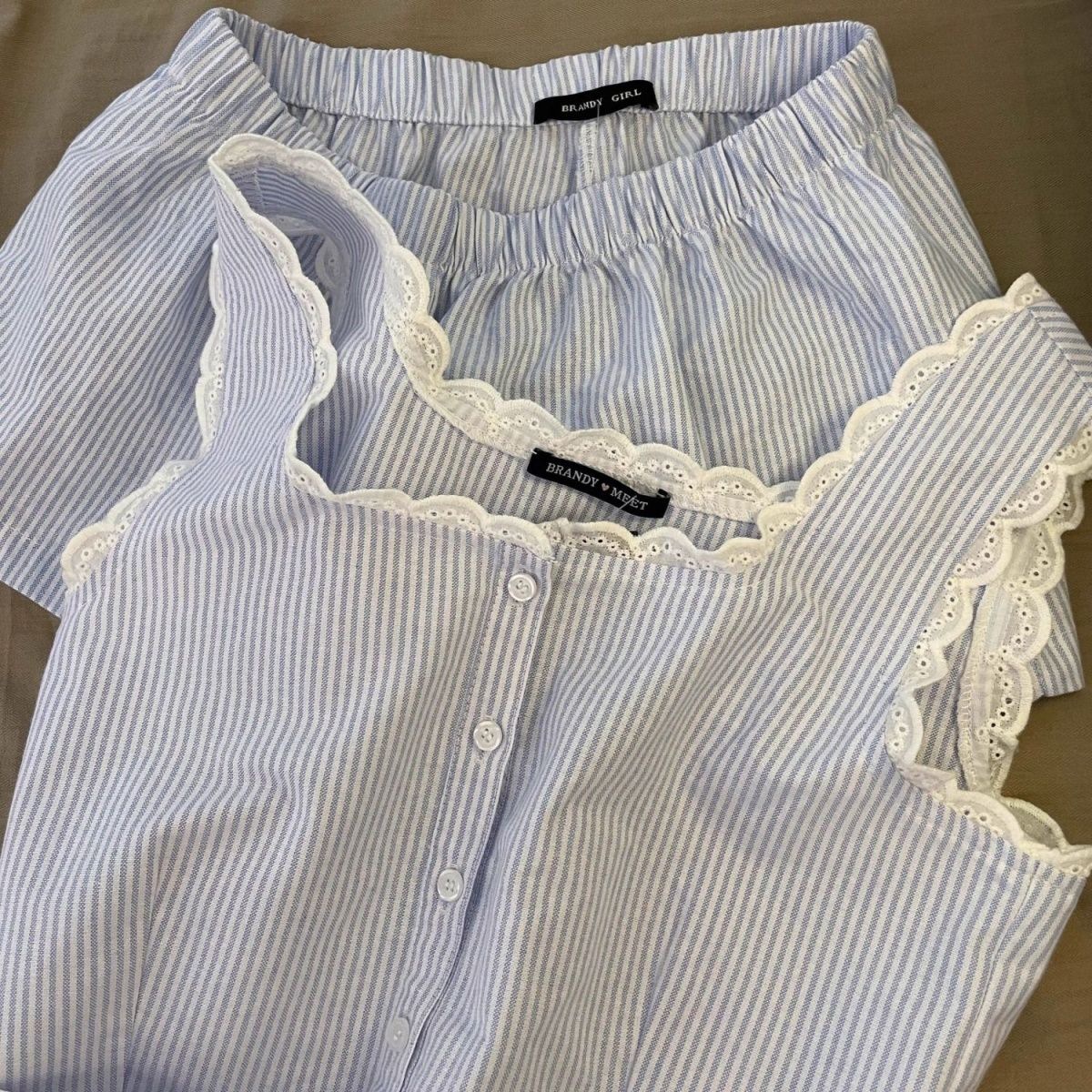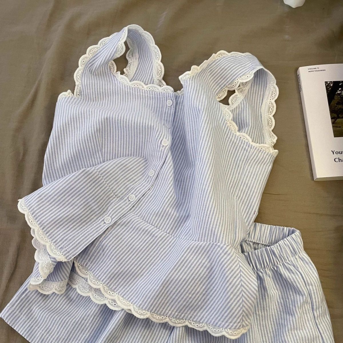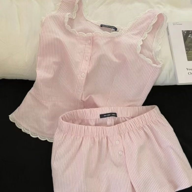 Повседневная пижама в полоску с кружевом на подтяжках для женщин, весенне-летние новые шорты с высокой талией, домашняя одежда, комплект из двух предметов