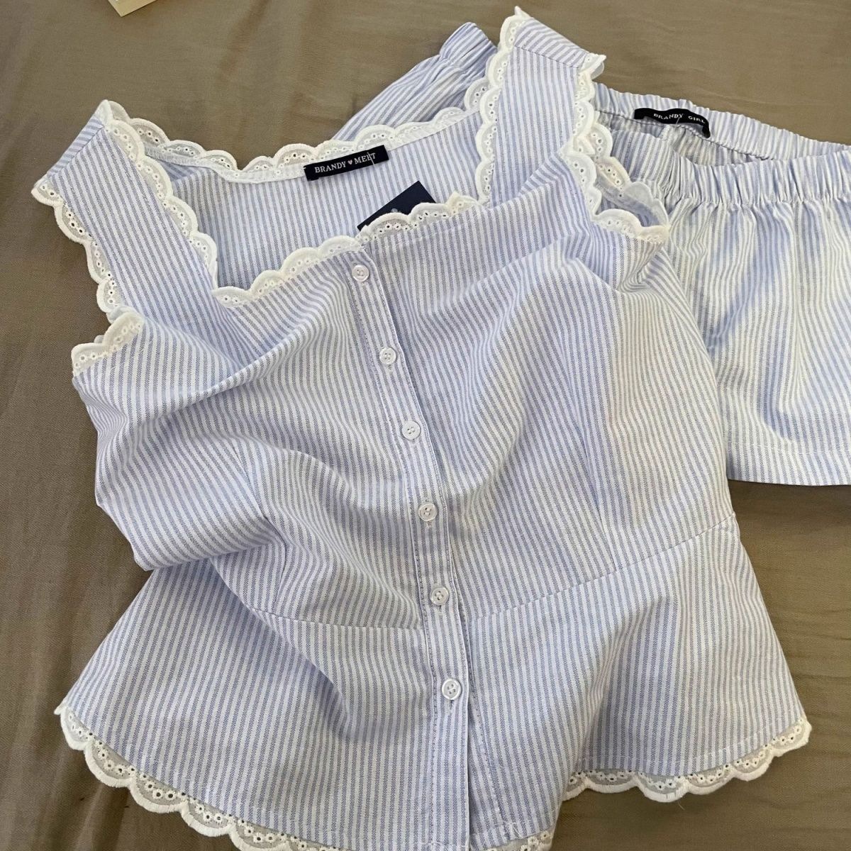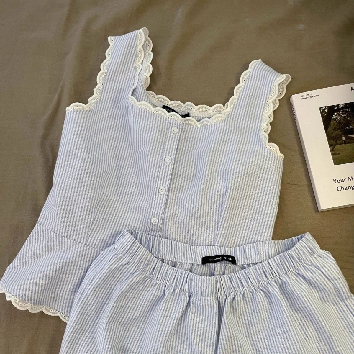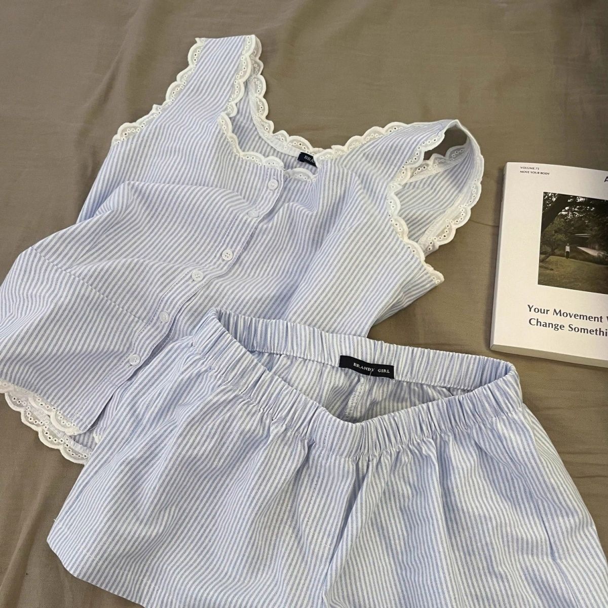 Повседневная пижама в полоску с кружевом на подтяжках для женщин, весенне-летние новые шорты с высокой талией, домашняя одежда, комплект из двух предметов