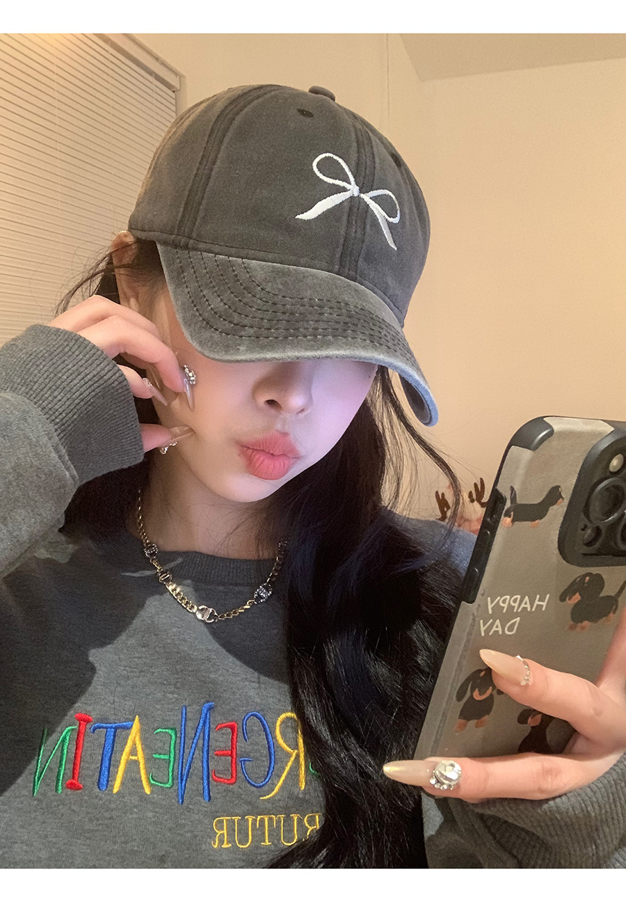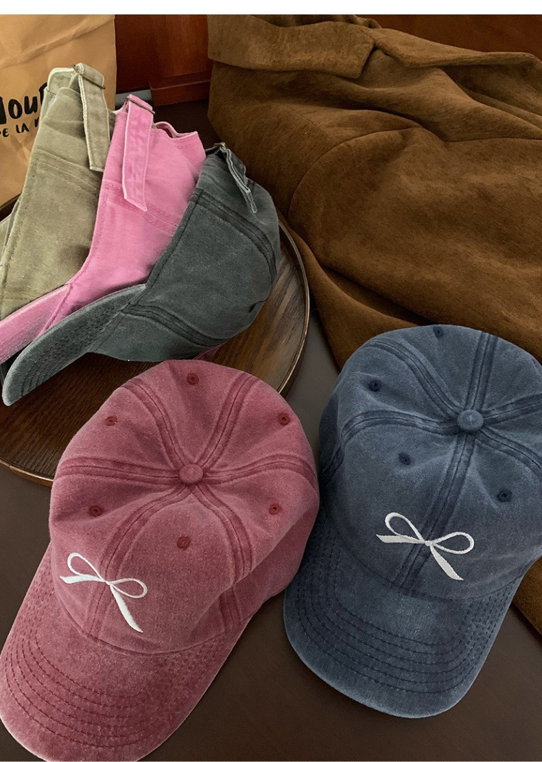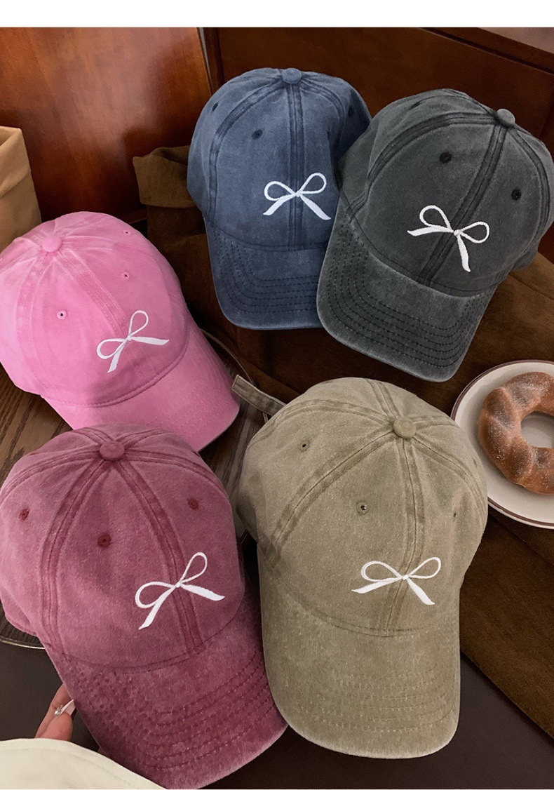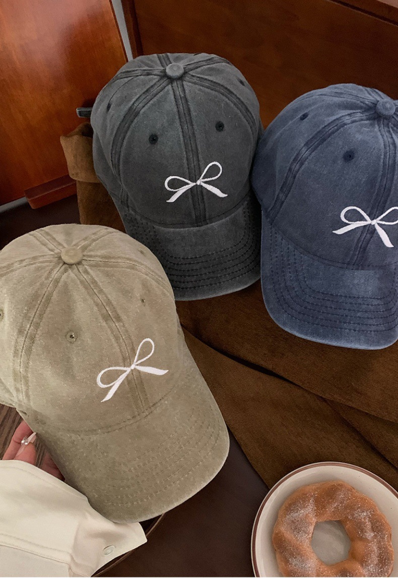 Женская бейсболка с глубоким бантом и вышивкой лимона, весна 2024, новый стиль, стиранная и потертая американская ретро-крышка с широкими полями в виде утиного лица