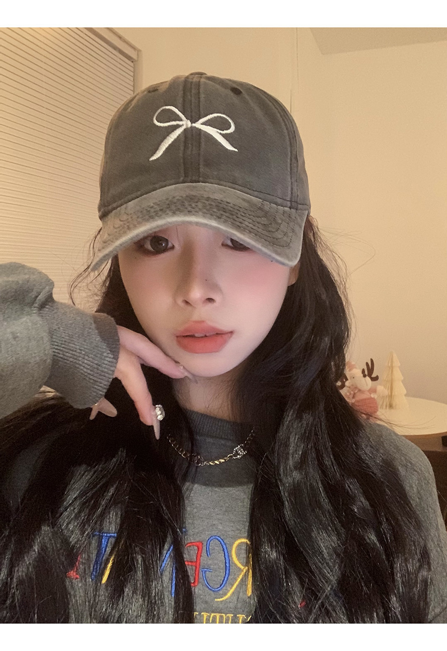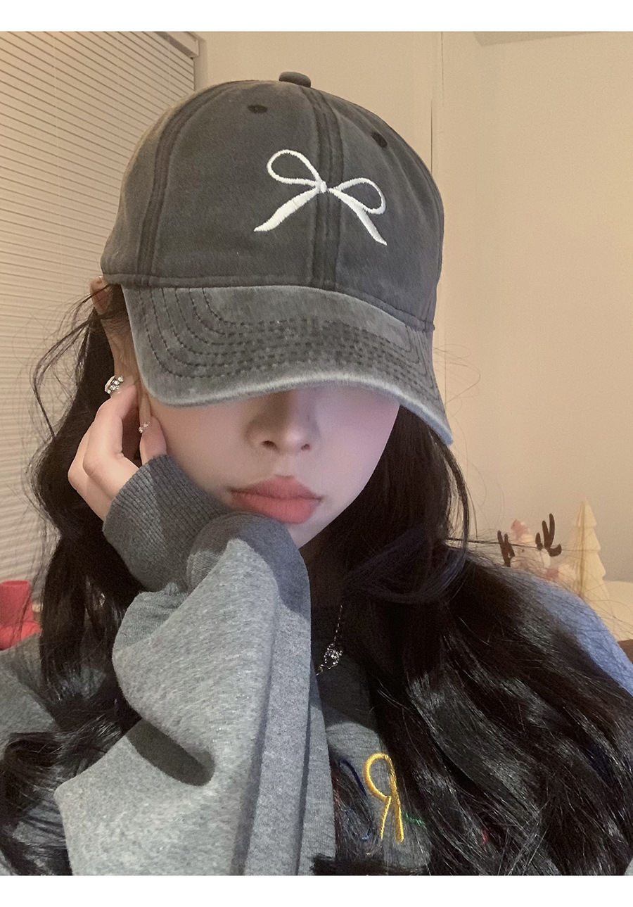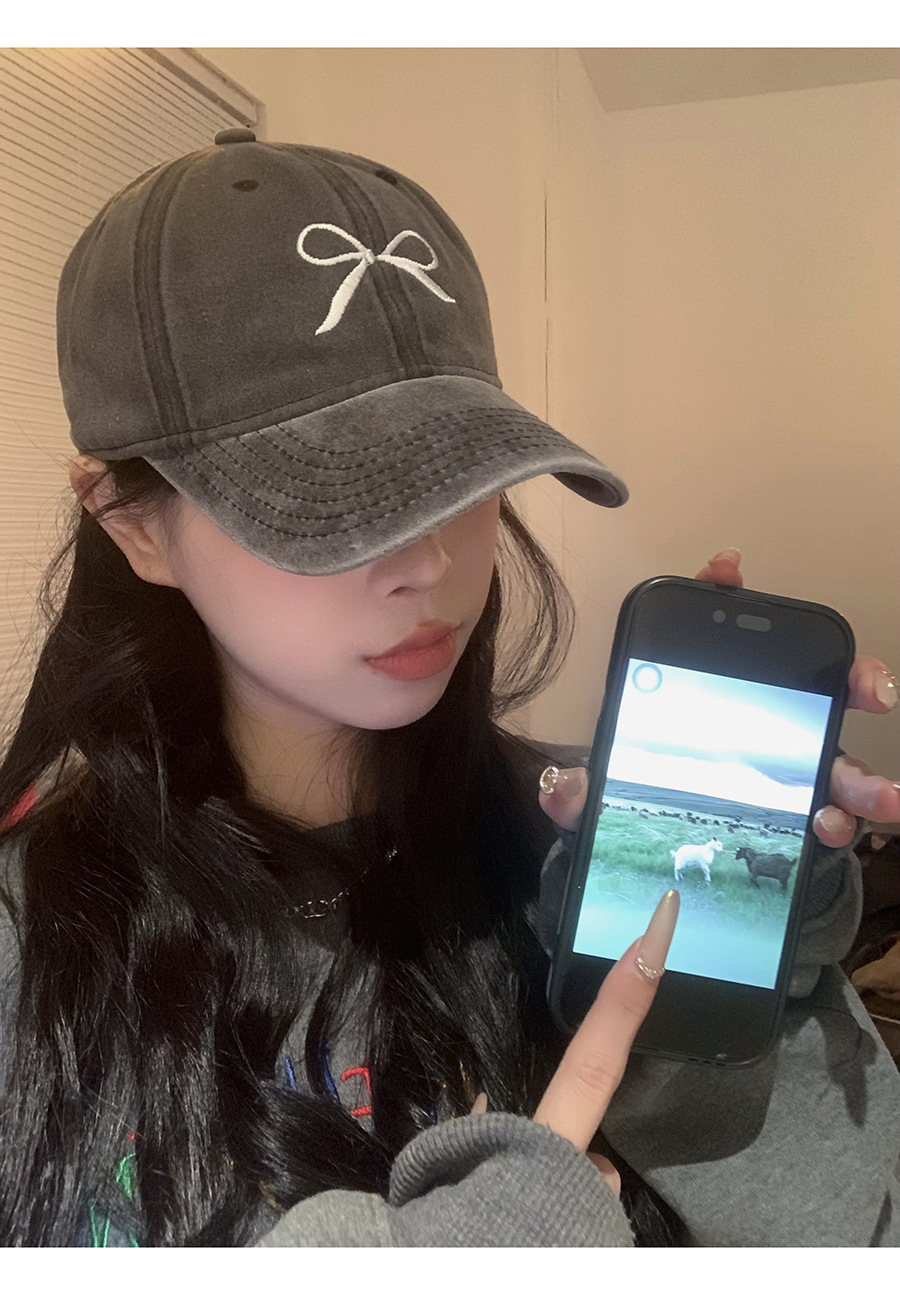 Женская бейсболка с глубоким бантом и вышивкой лимона, весна 2024, новый стиль, стиранная и потертая американская ретро-крышка с широкими полями в виде утиного лица
