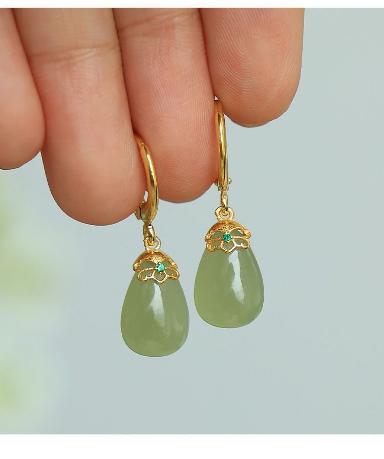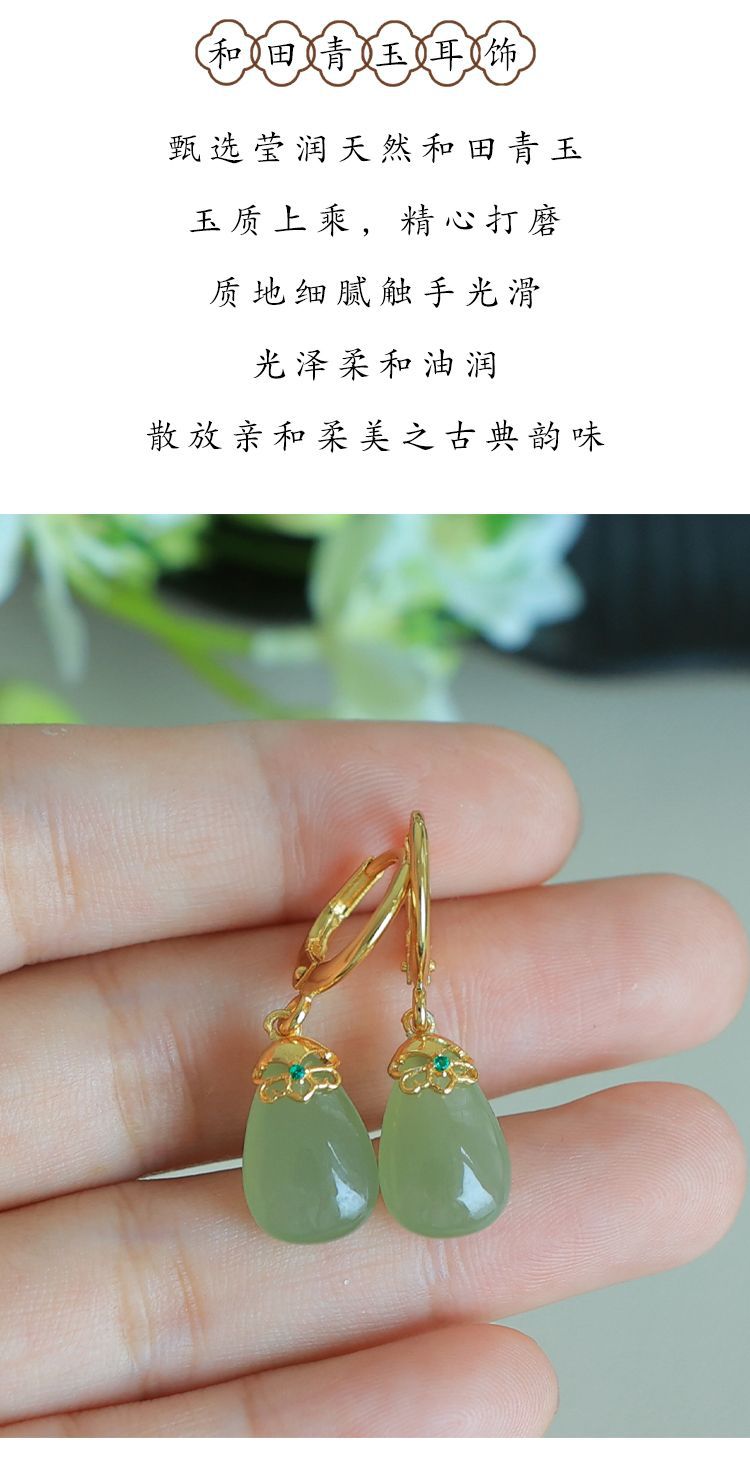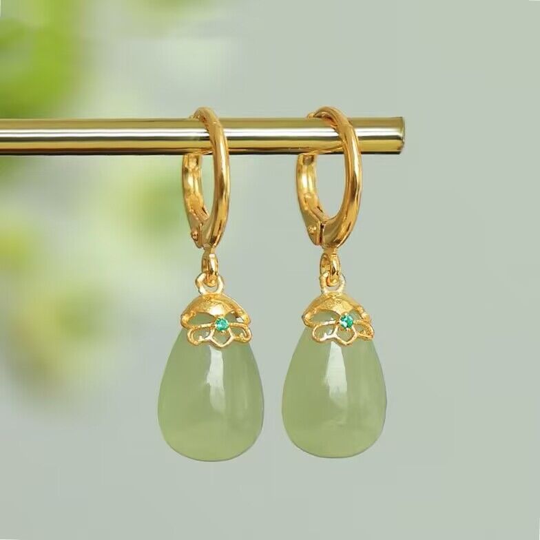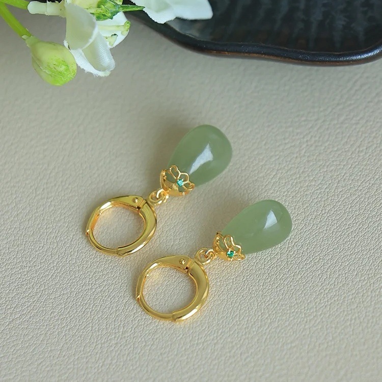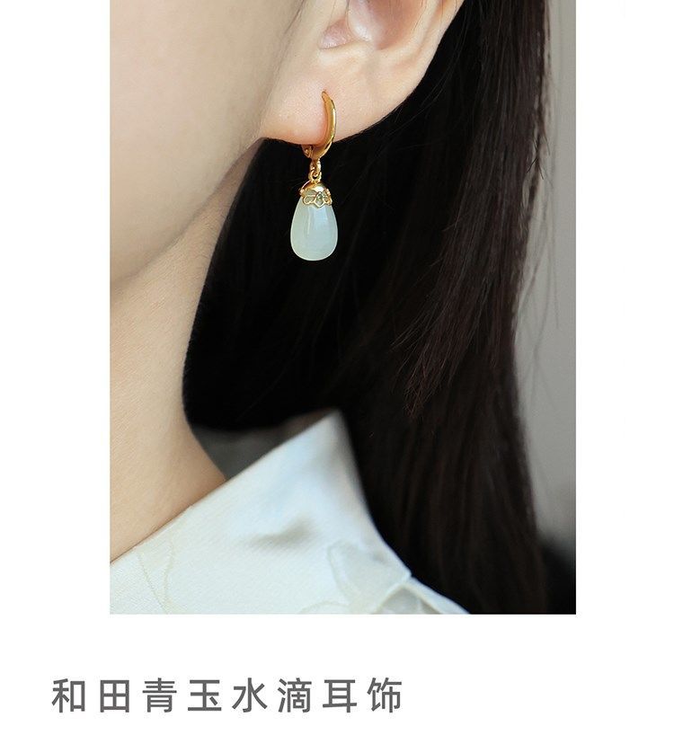 Модные популярные женские серьги из зеленого нефрита Hetian, покрытые чистым серебром с настоящим золотом, винтажные изысканные серьги с каплями воды из белого нефрита.