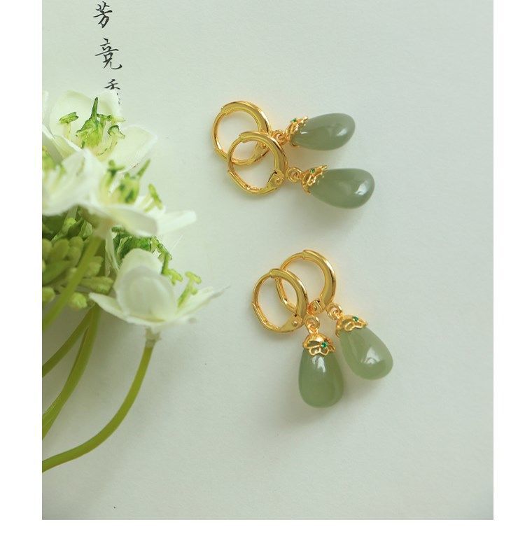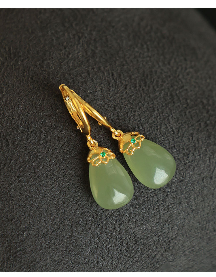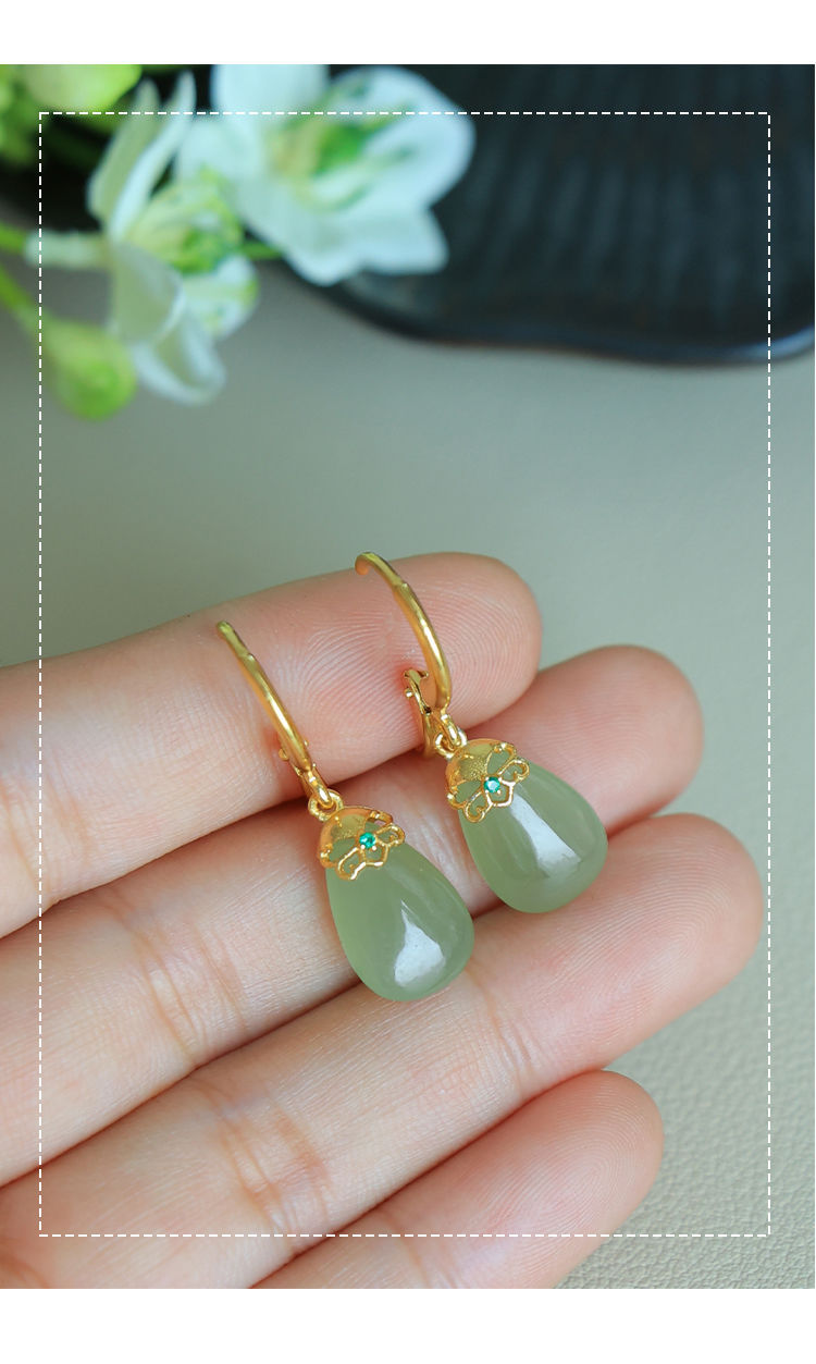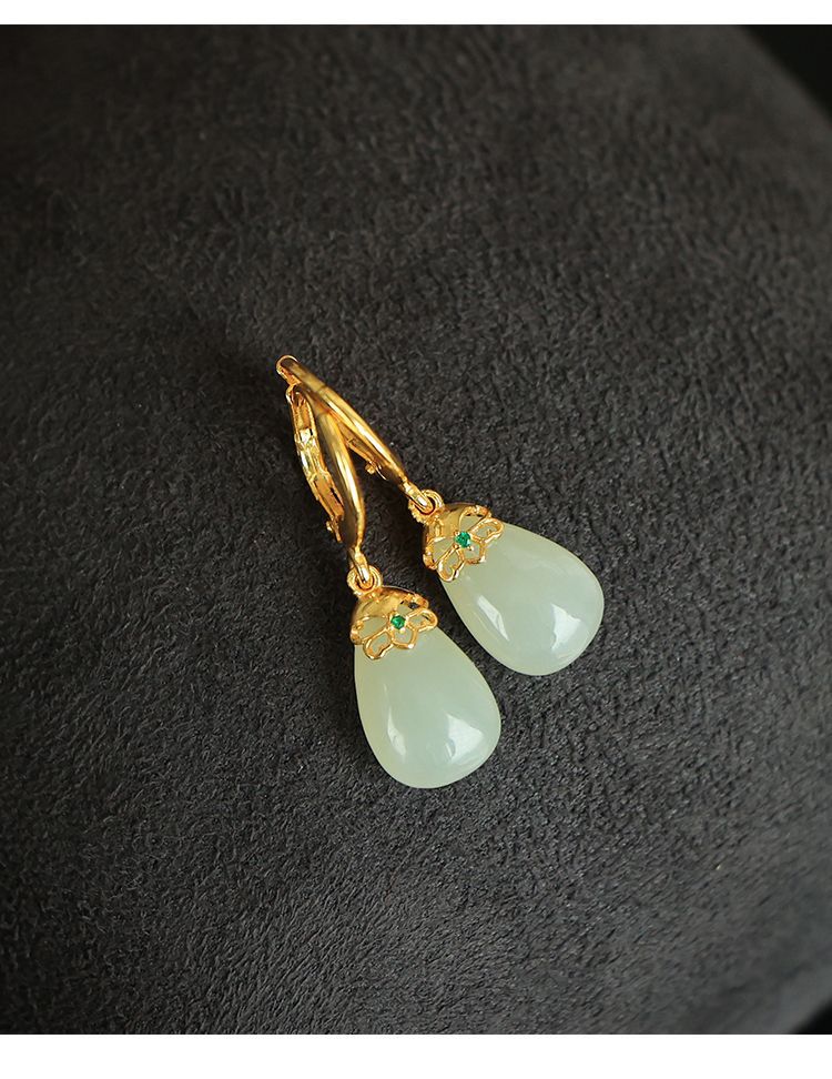 Модные популярные женские серьги из зеленого нефрита Hetian, покрытые чистым серебром с настоящим золотом, винтажные изысканные серьги с каплями воды из белого нефрита.