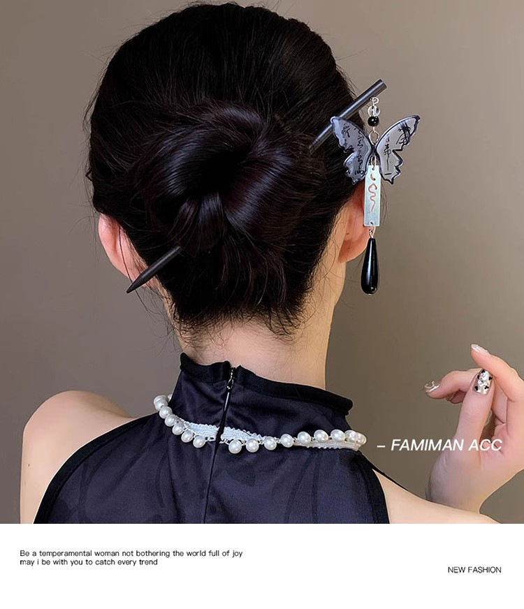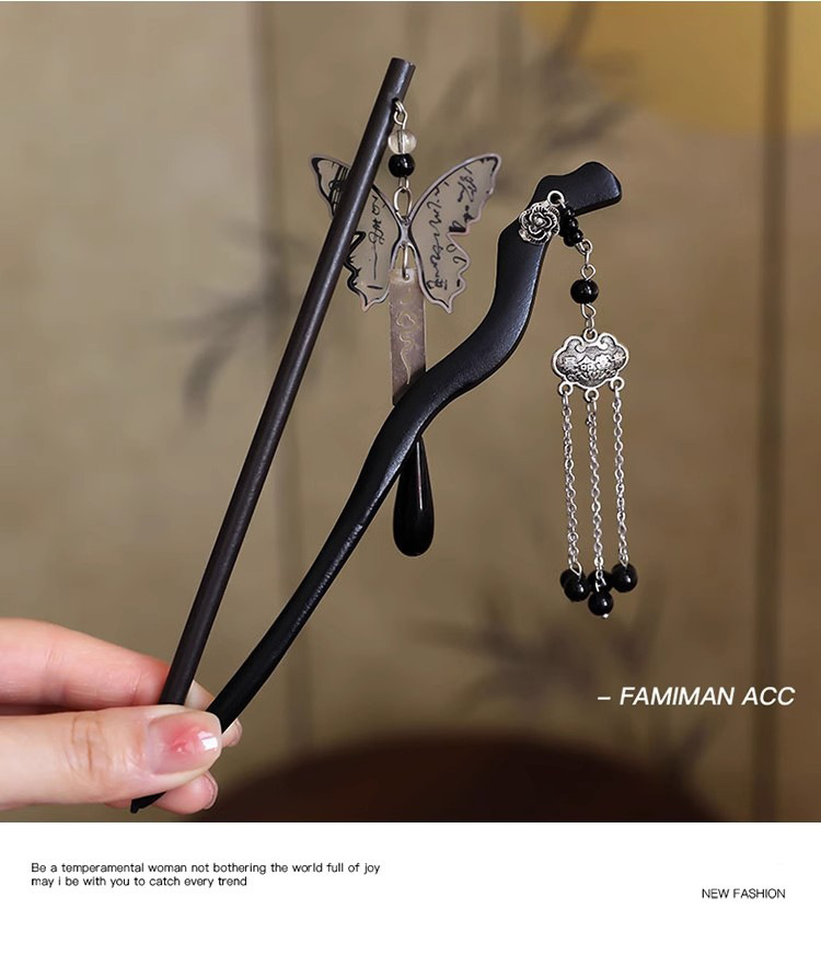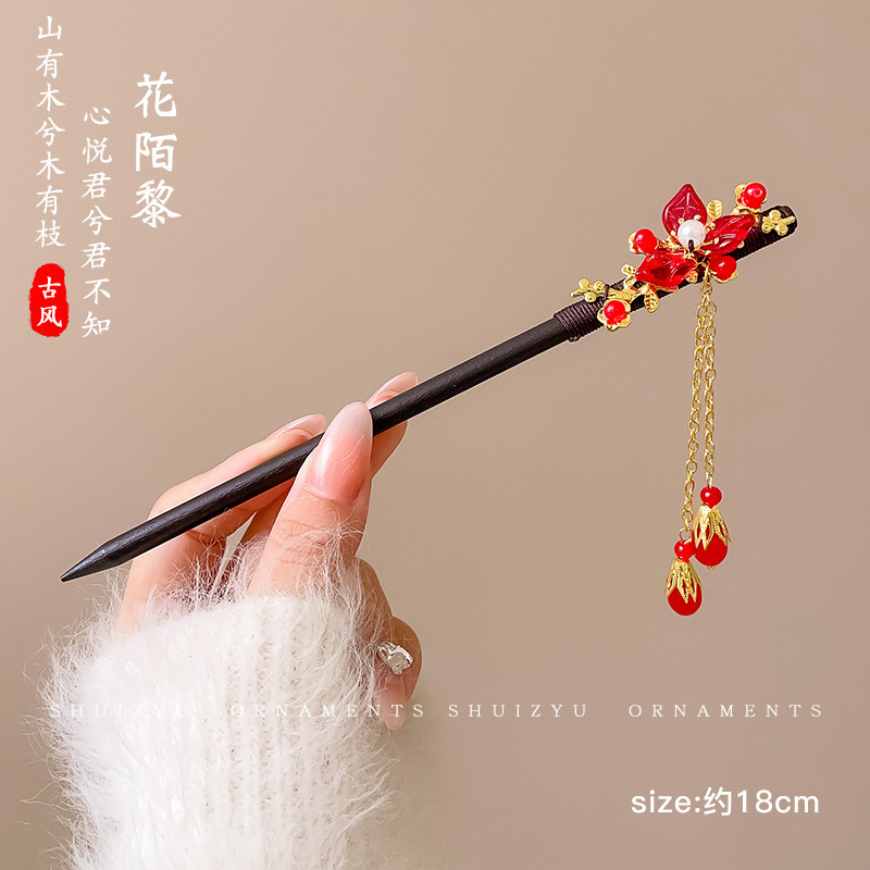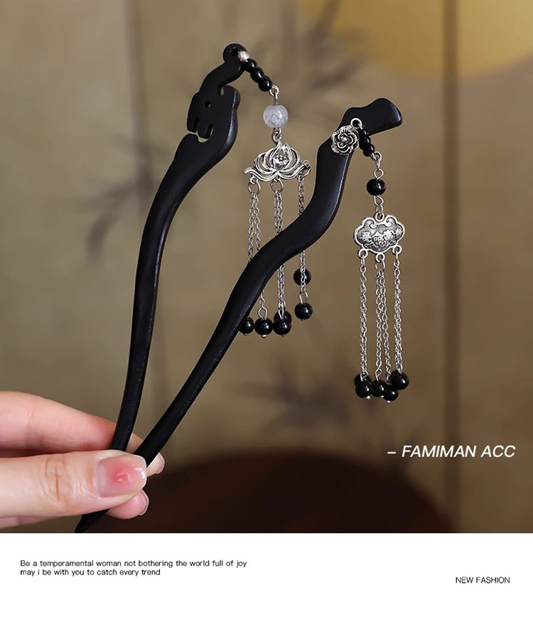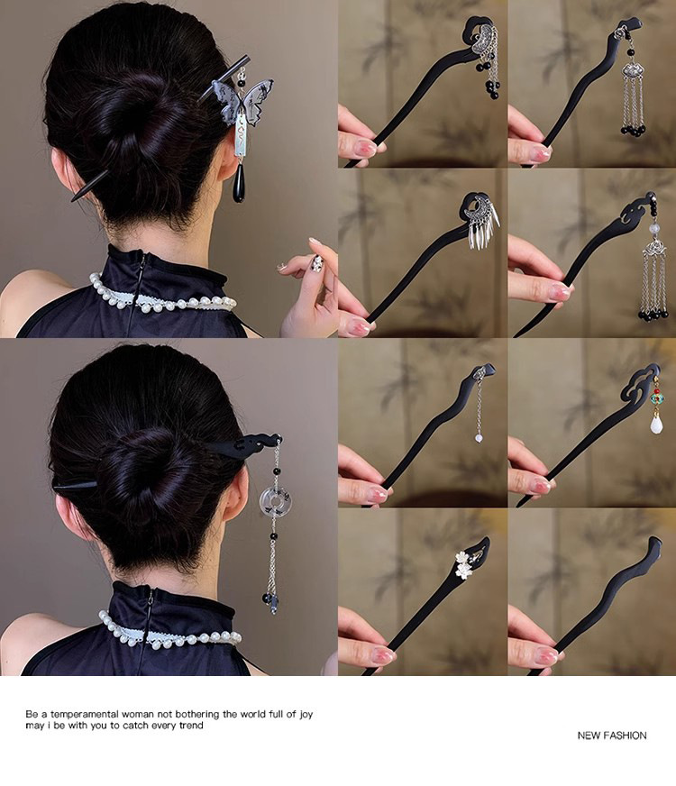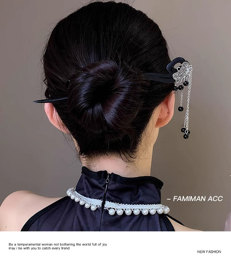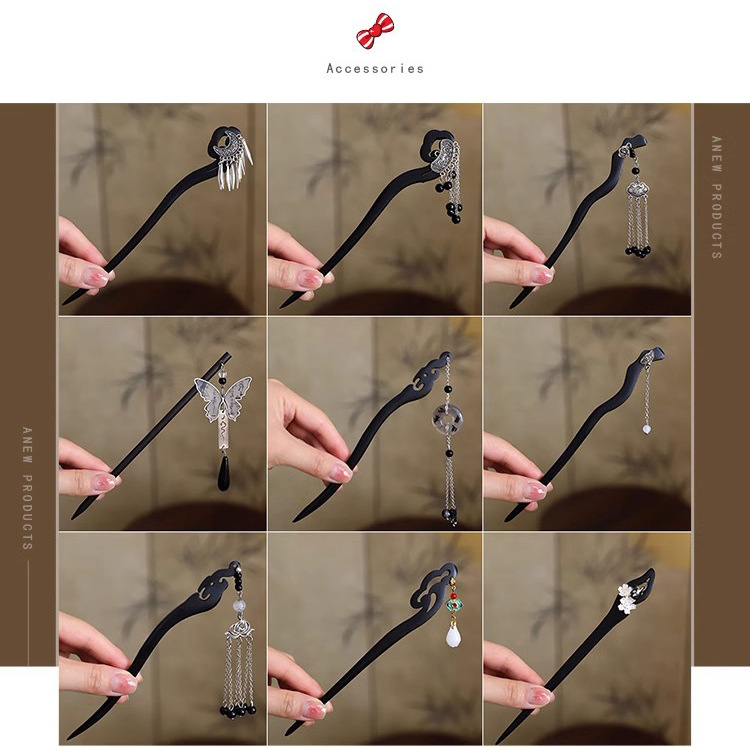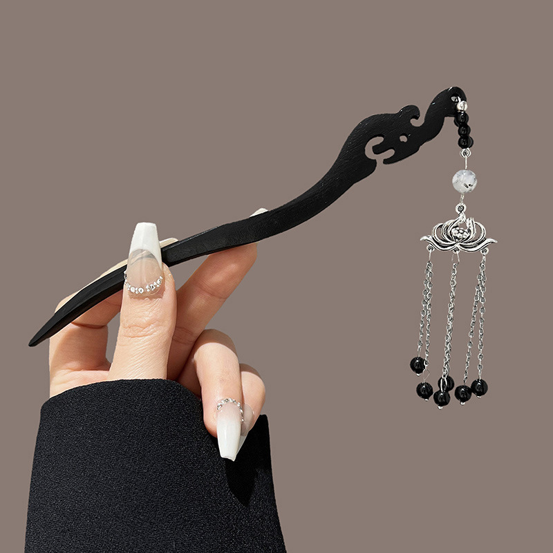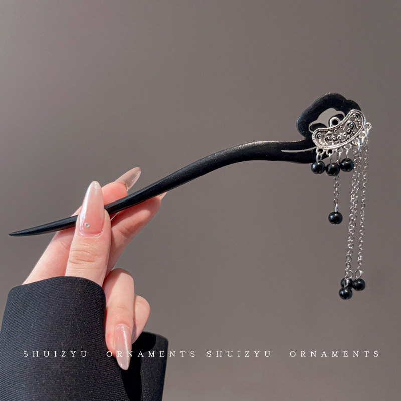 Новая высококачественная заколка для волос из искусственного черного дерева в китайском стиле, заколка с кисточкой в древнем стиле, женская заколка для волос с большим объемом волос