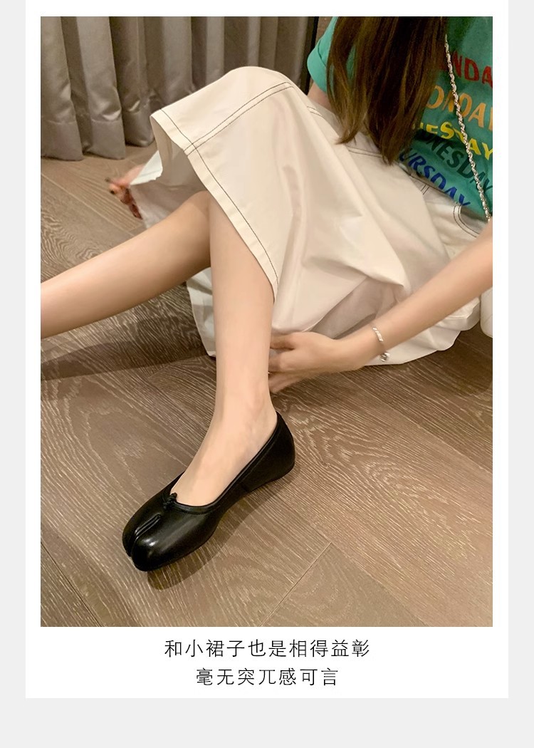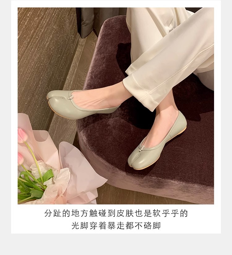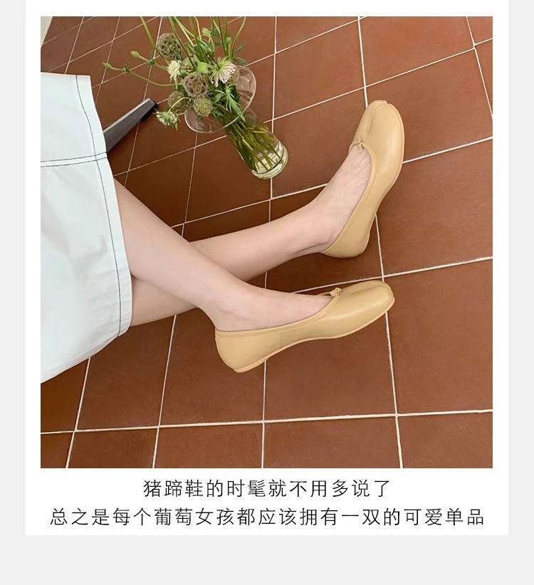Гонконг 2025. Весенне-осенние туфли нового стиля без шнуровки с раздельным носком для женщин, одинарные туфли на плоской подошве из натуральной кожи с изображением свиной лапы, однотонные лоферы для ленивых.