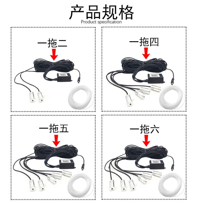 4 источника света + 6m оптические волокна [тип USB]; 5 источников света + 6m оптических волокна [тип USB]; 6 источников света + 8m оптических волокна [тип USB]; 4 источника света + 6m оптических волокна [версия с проводкой 12В]; 5 источников света + 6m оптических волокна [версия с проводкой 12В]; 6 источников света + 8m оптических волокна [версия с проводкой 12В]; 4 источника света + 6m оптических волокна [модель прикуривателя 12В]; 5 источников света + 6m оптических волокна [модель прикуривателя 12В]; 6 источников света + 8m оптических волокна [модель прикуривателя 12В]