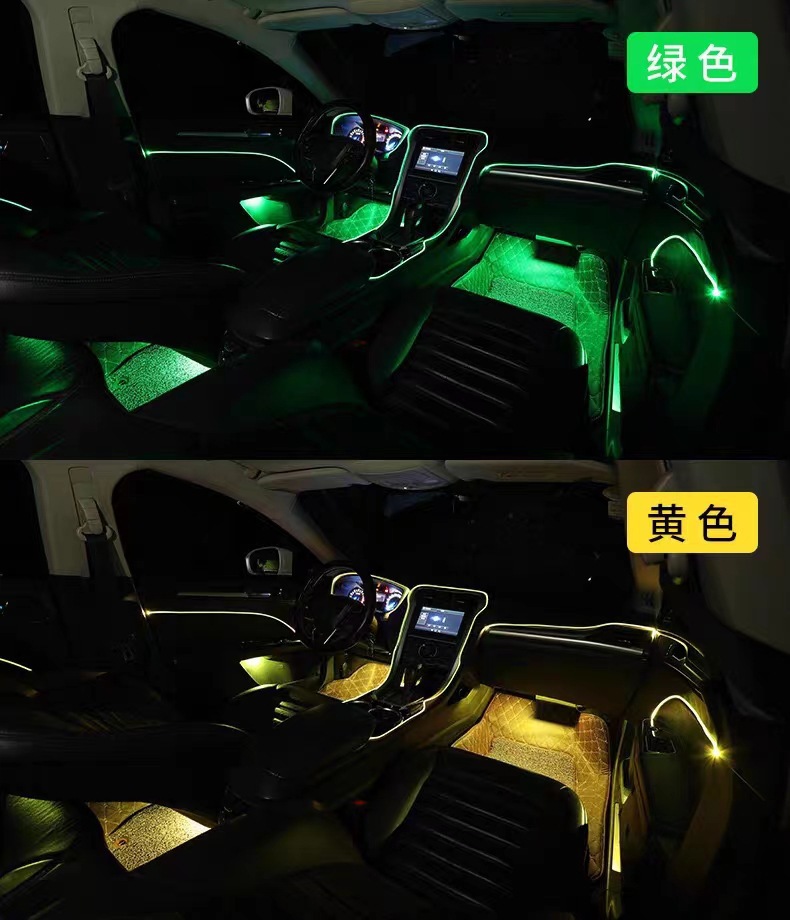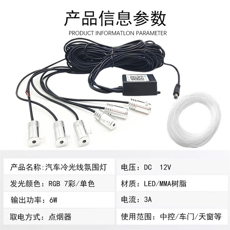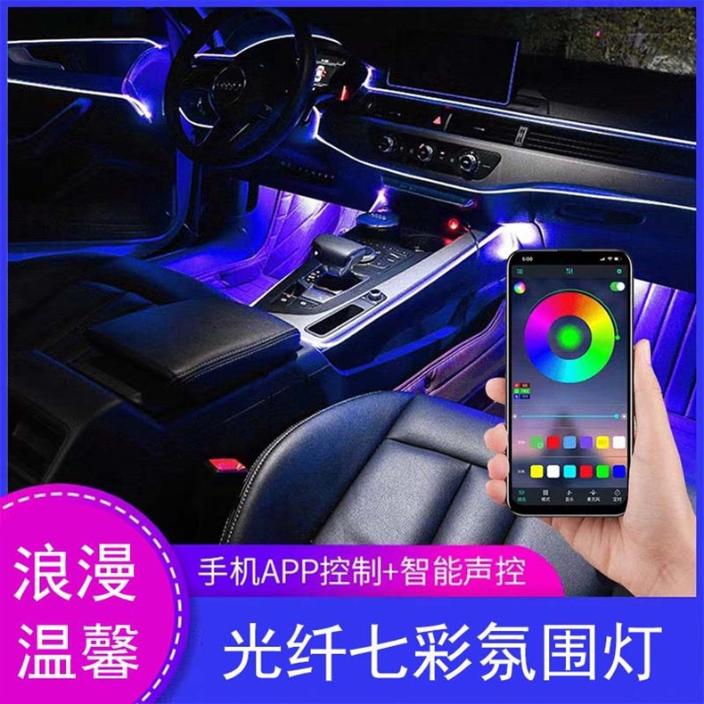 Трансграничная точечная атмосферная подсветка автомобиля, приложение для дистанционного управления, красочная музыкальная ритм-подсветка, 64-цветная оптоволоконная подсветка для модификации автомобиля