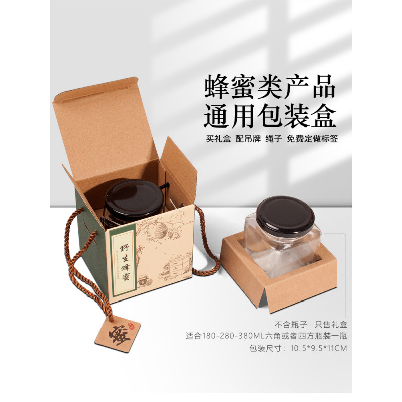 Дикий мед, домашний мед, 0.5kg стеклянные бутылки, упаковочная бумажная коробка, подарочная коробка, сумка-тоут из крафт-бумаги, на заказ
