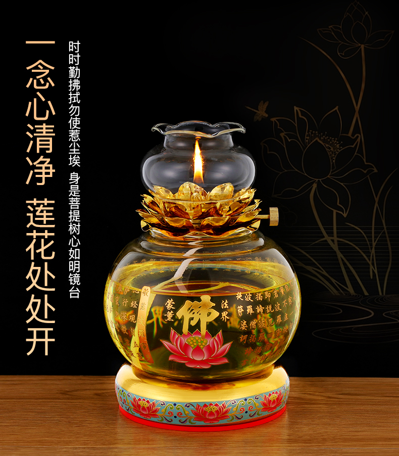 Жидкая лампа с маслом, масляная лампа, лампа в форме лотоса перед Буддой, лампа Будды, бытовая ветрозащитная вечная лампа, лампа для алтаря