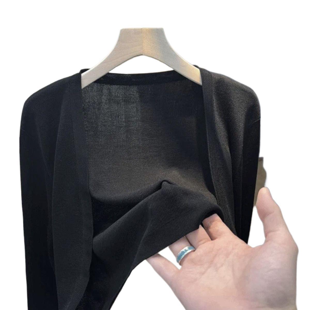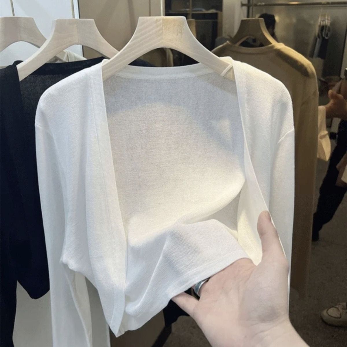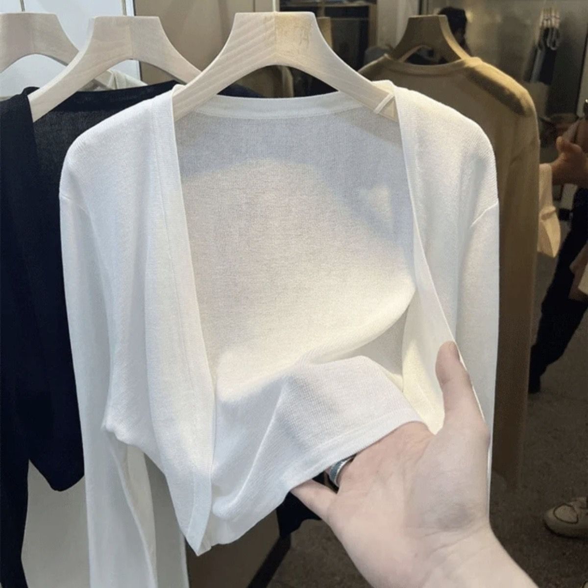 Летний кардиган из ледяного шелка для женщин с юбкой на подтяжках, новинка лета 2025 года, тонкая солнцезащитная куртка, небольшой топ-шаль