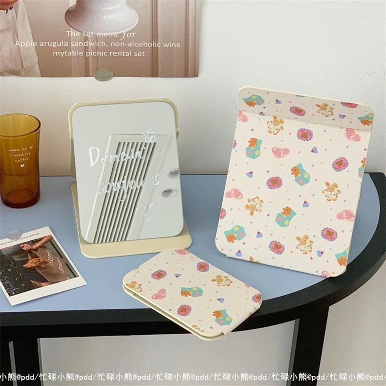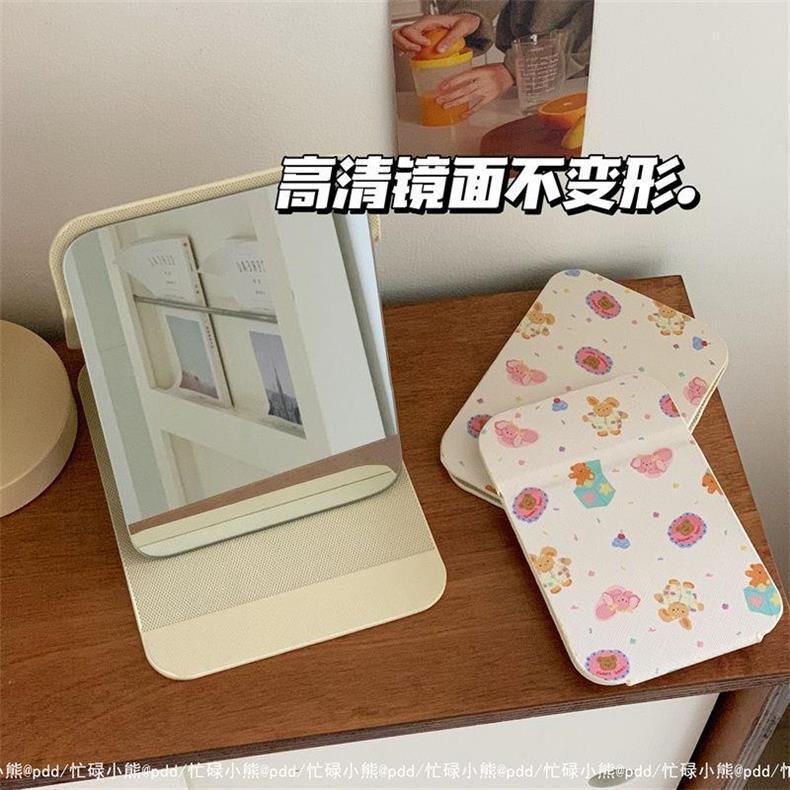Милое складное маленькое зеркало с мультяшным кроликом, кукла, зеркало для макияжа, портативное студенческое общежитие, настольное косметическое зеркало для женщин