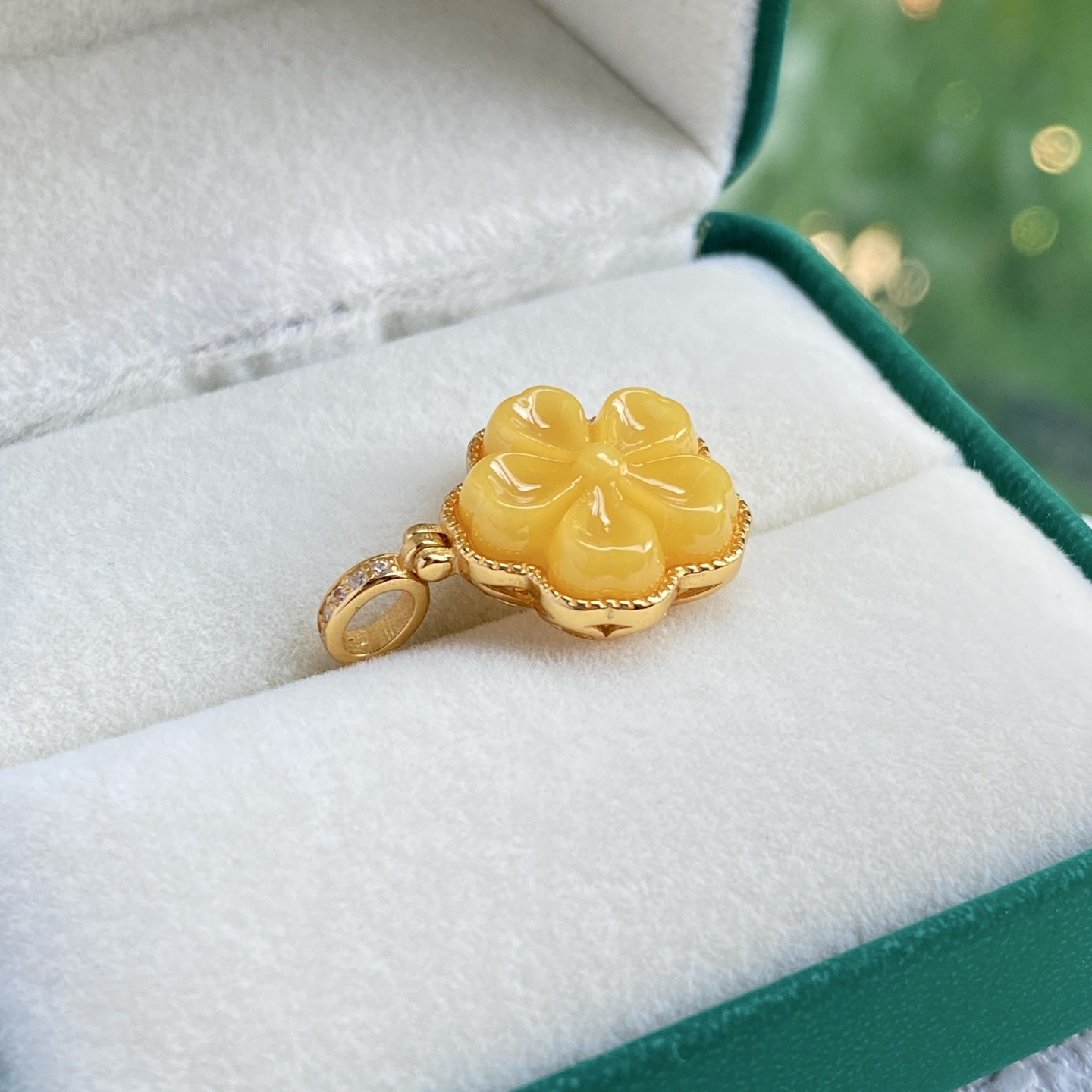 [Одиночный кулон] Подвеска из пчелиного воска с клевером — около 14,8*22,2 мм; [Комплект] Серебряная цепочка S925 + подвеска из пчелиного воска с клевером