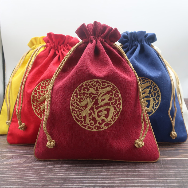 Вышитый парчовый мешочек для хранения, очень большой льняной мешочек на шнурке, культурно-художественный упаковочный мешочек, мешочек для ювелирных изделий.