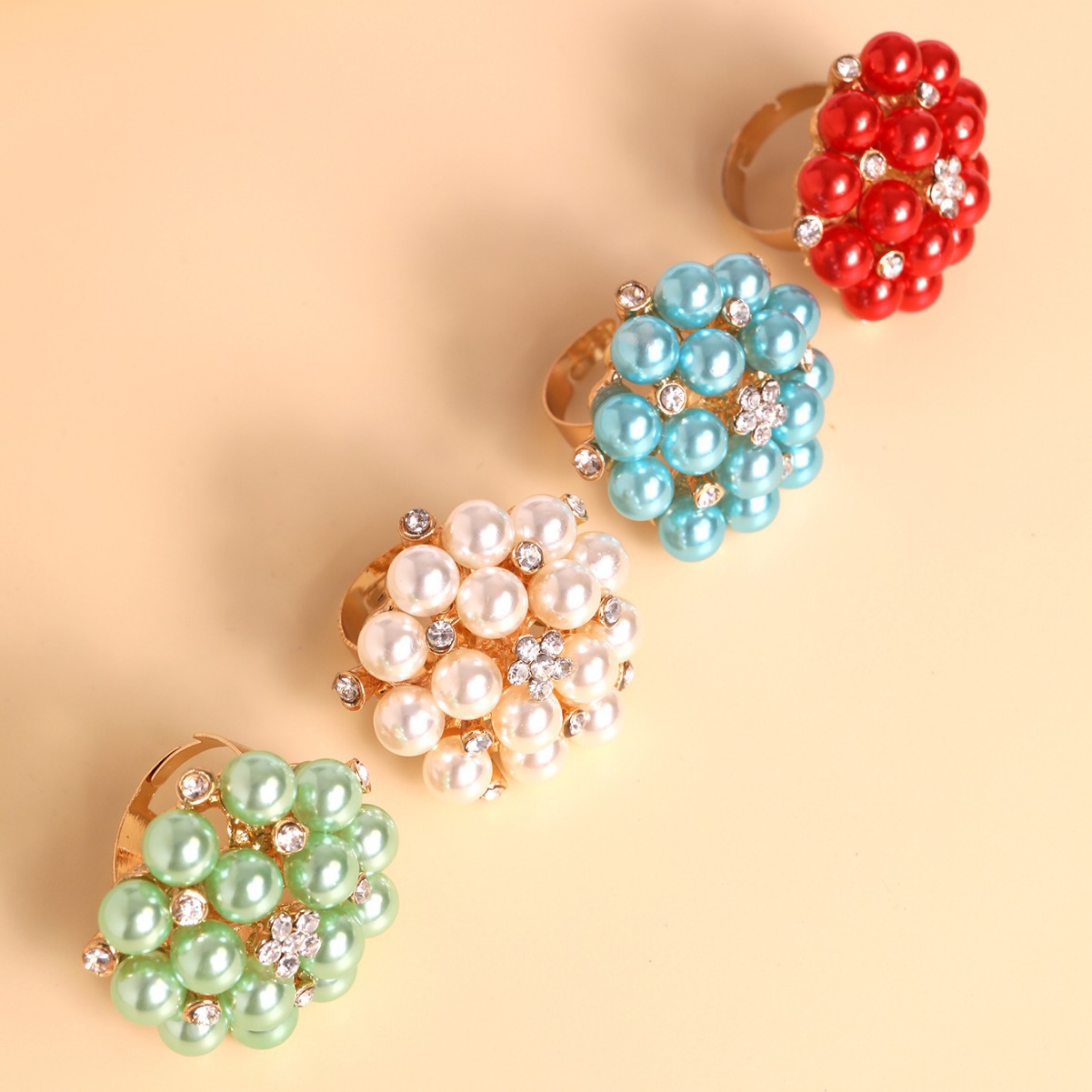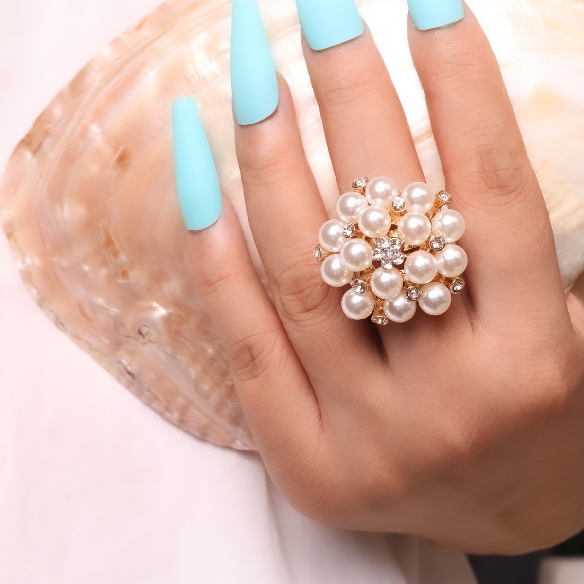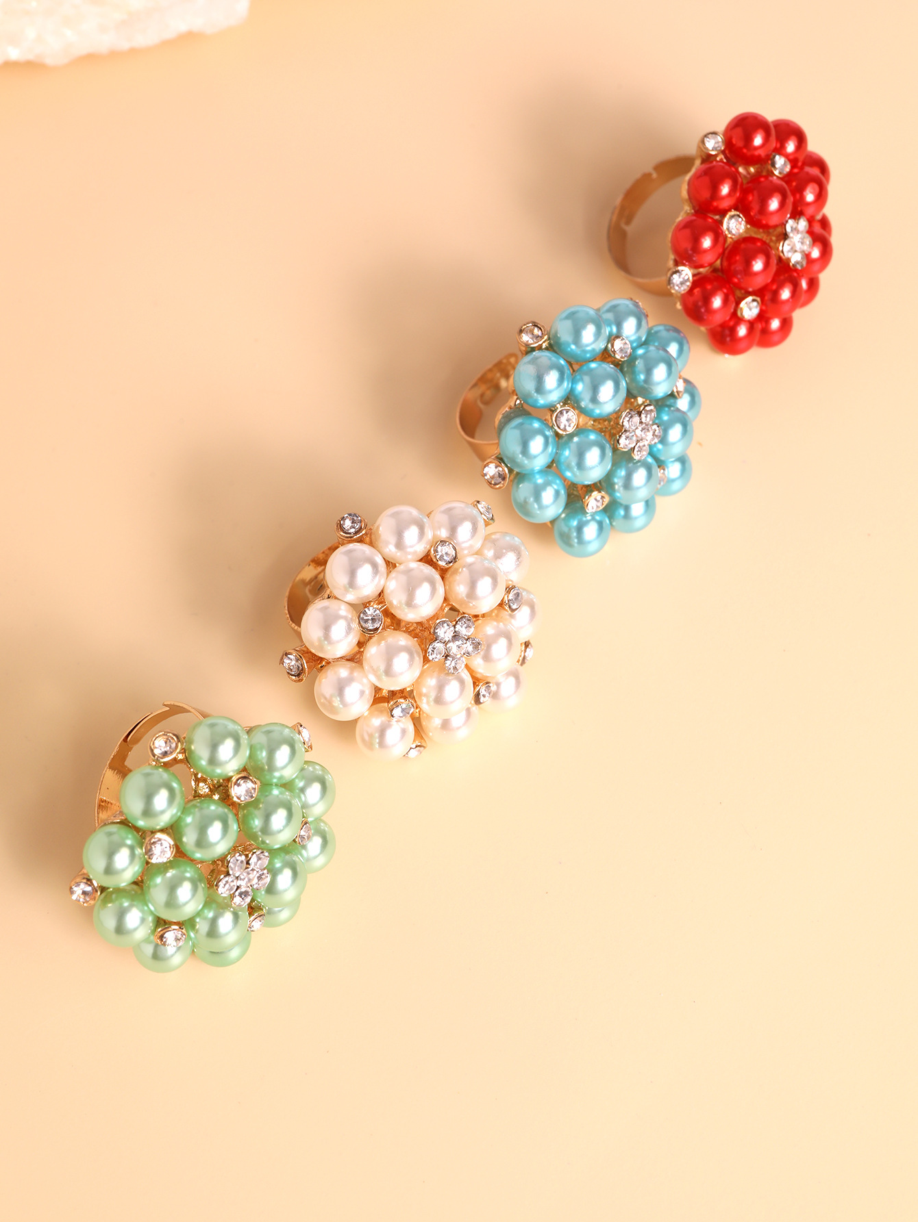 Женское модное многоцветное открытое кольцо с жемчугом и стразами в виде цветка, трансграничные поставки, интернет-знаменитости носят преувеличенное жемчужное кольцо