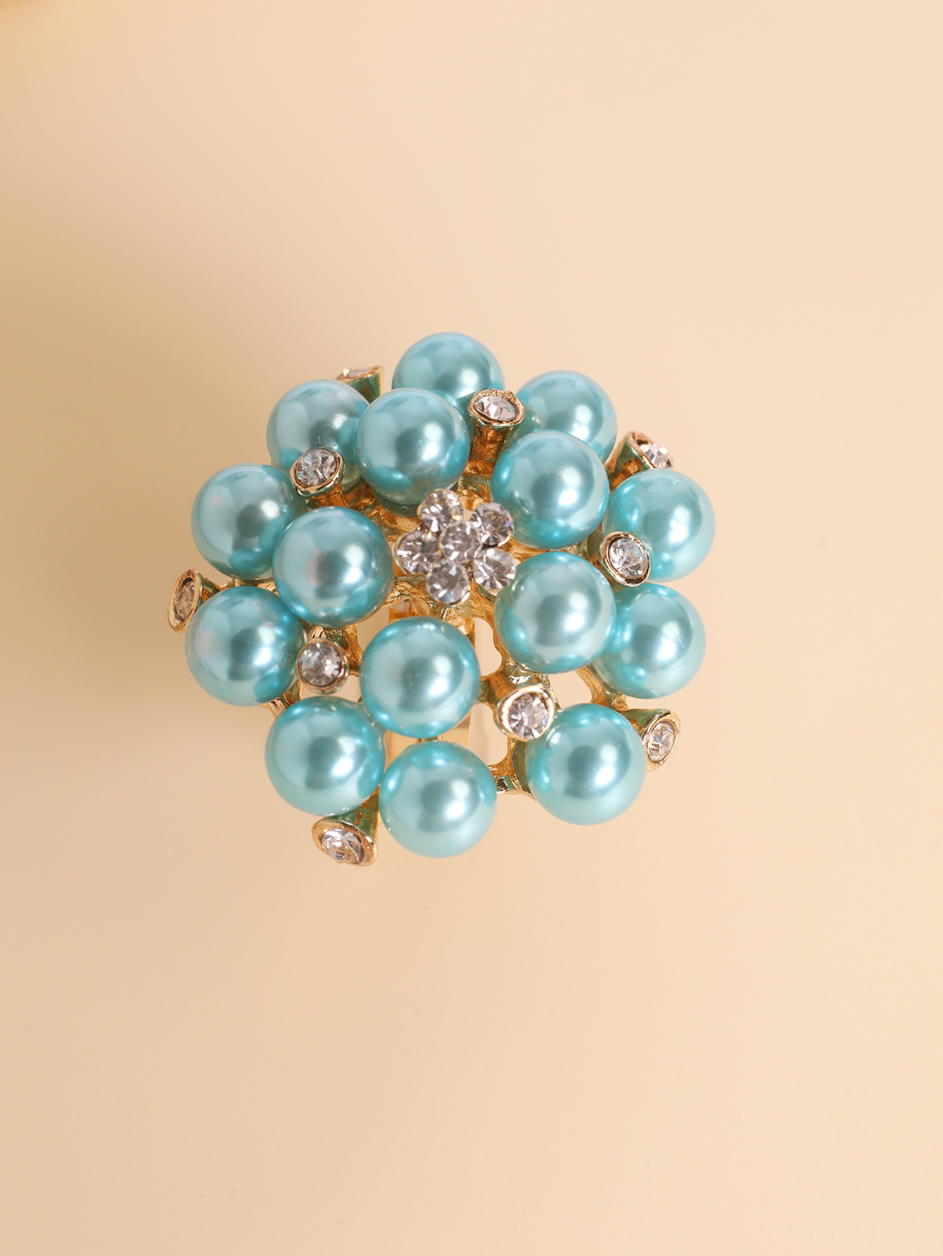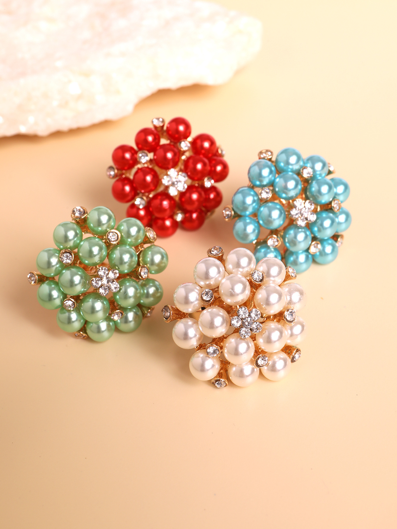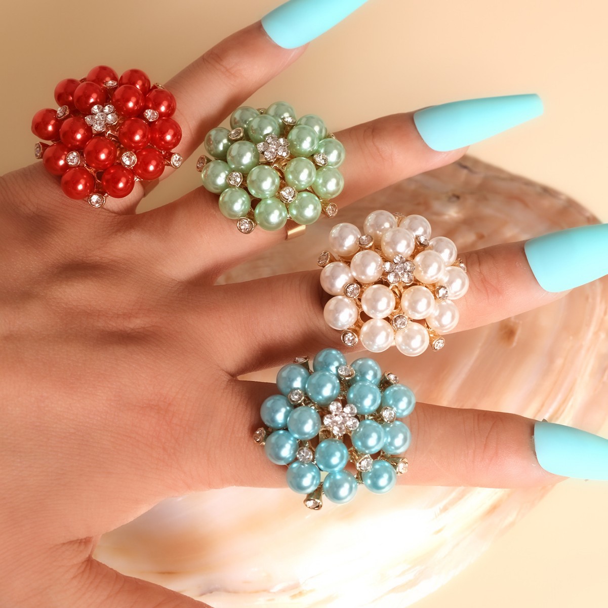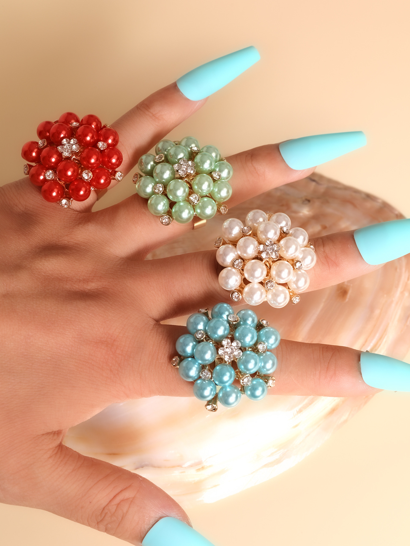 Женское модное многоцветное открытое кольцо с жемчугом и стразами в виде цветка, трансграничные поставки, интернет-знаменитости носят преувеличенное жемчужное кольцо