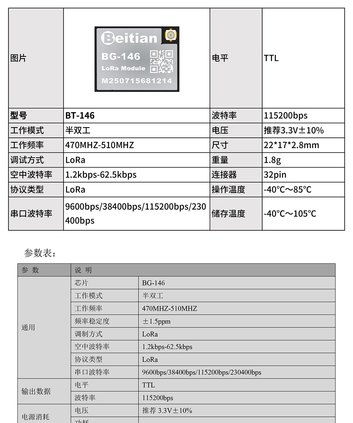 BG-146 (пара, уровень TTL, прямая прозрачная передача один-к-одному); BG-Y146 (одиночный, уровень TTL, подвижная станция)