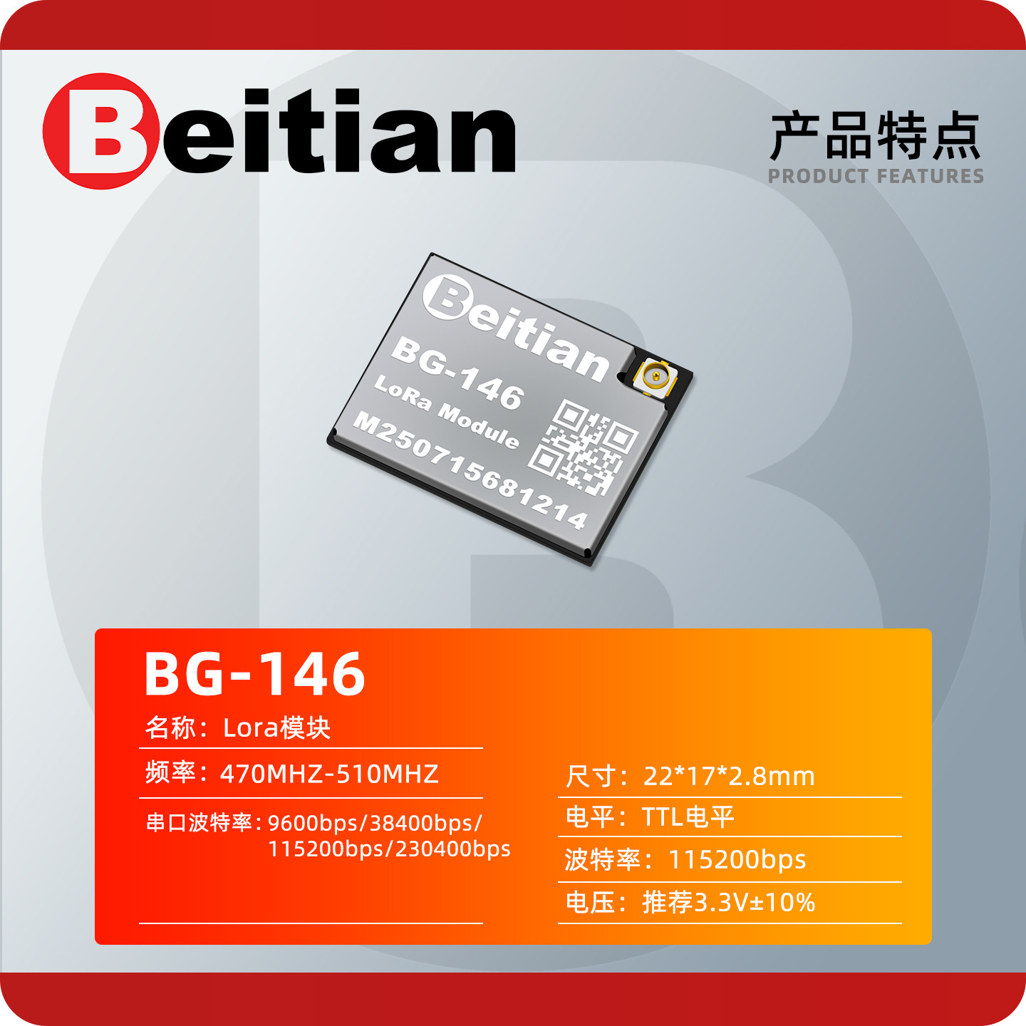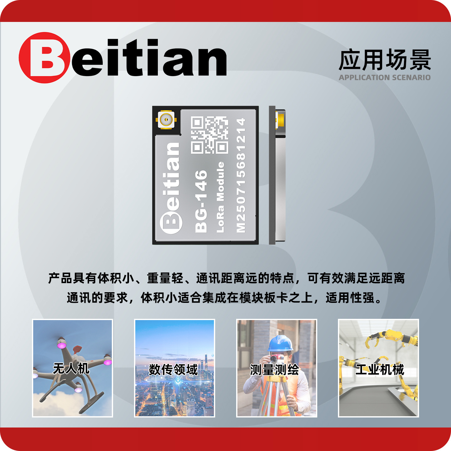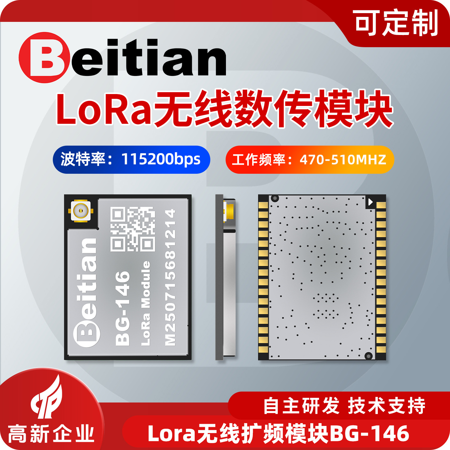 Модуль беспроводной передачи данных Beitian UAV, патч-тип, 433 МГц, LoRa, с расширенным спектром, DTU, прозрачная передача, BG-146