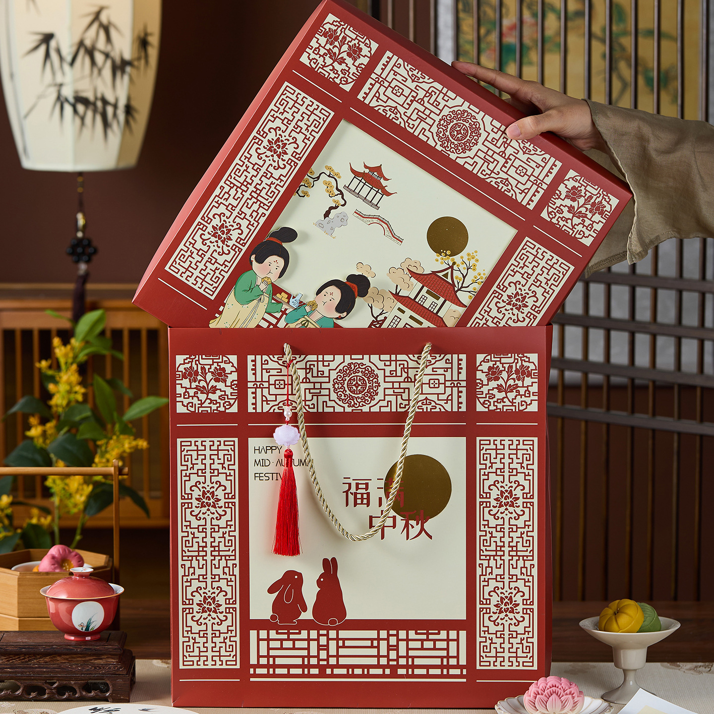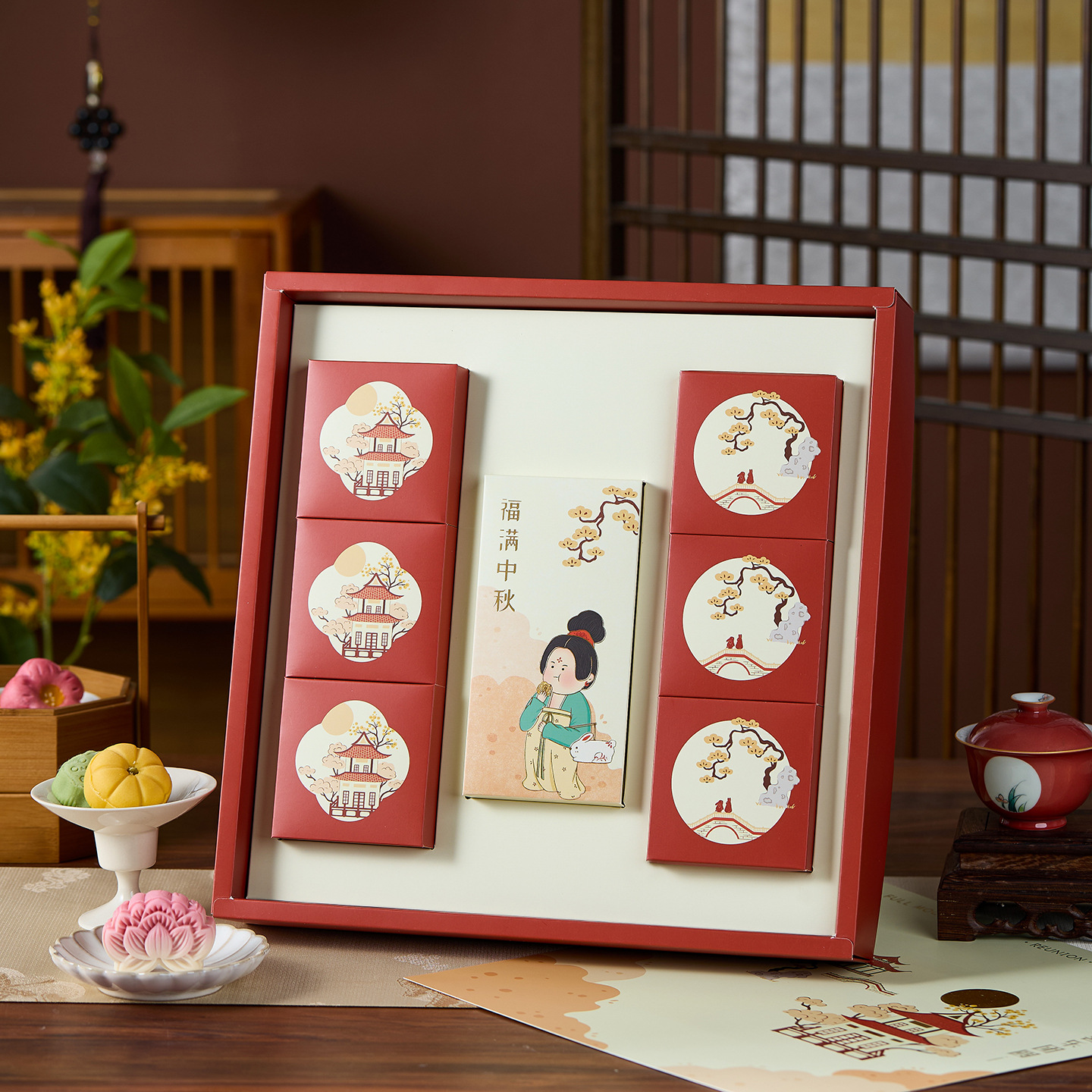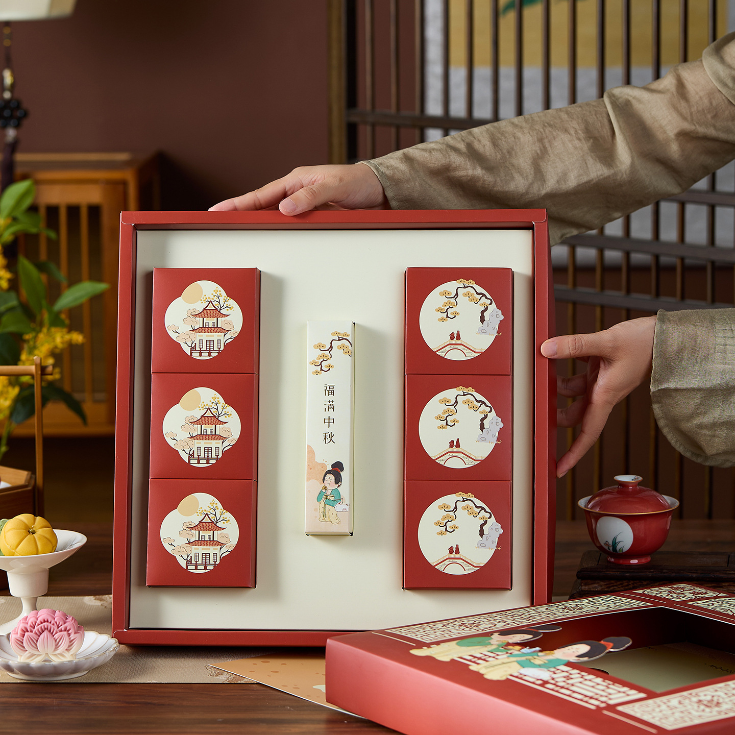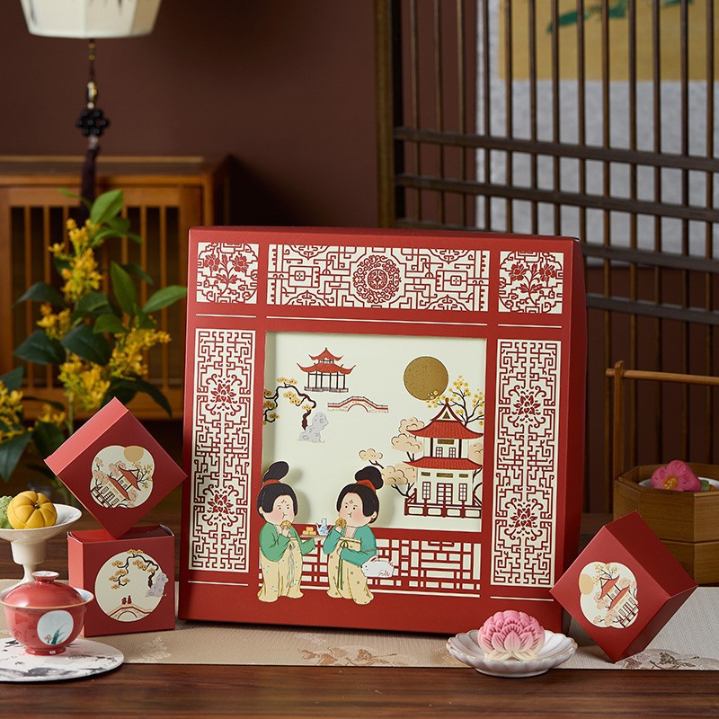 Подарочная коробка для лунных пряников 2025 года, новый дизайн в стиле шинуазри, 8- и 6-местная, для яичного желтка, высококачественная упаковка для бизнеса, подарок на середину осени