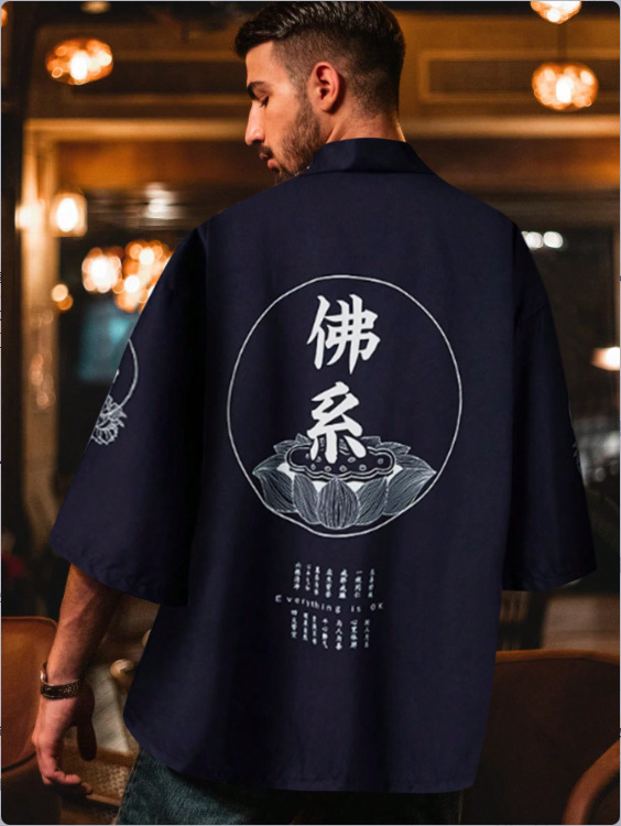 Свободный кардиган, европейская и американская уличная мода, повседневная рубашка, топ в японском стиле, рукав три четверти, китайский стиль