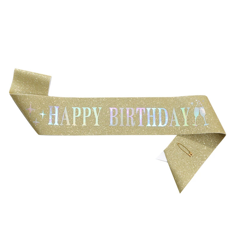 Плечевой ремень на день рождения, с днем рождения, трансграничный европейский и американский праздничный ремень из блестящей ткани с горячим тиснением, этикетный ремень