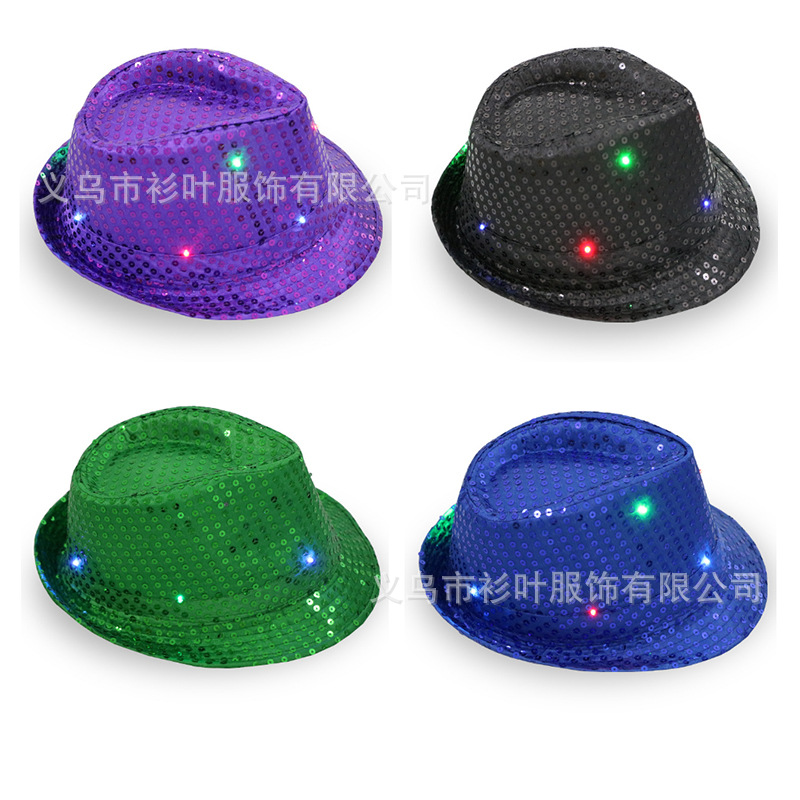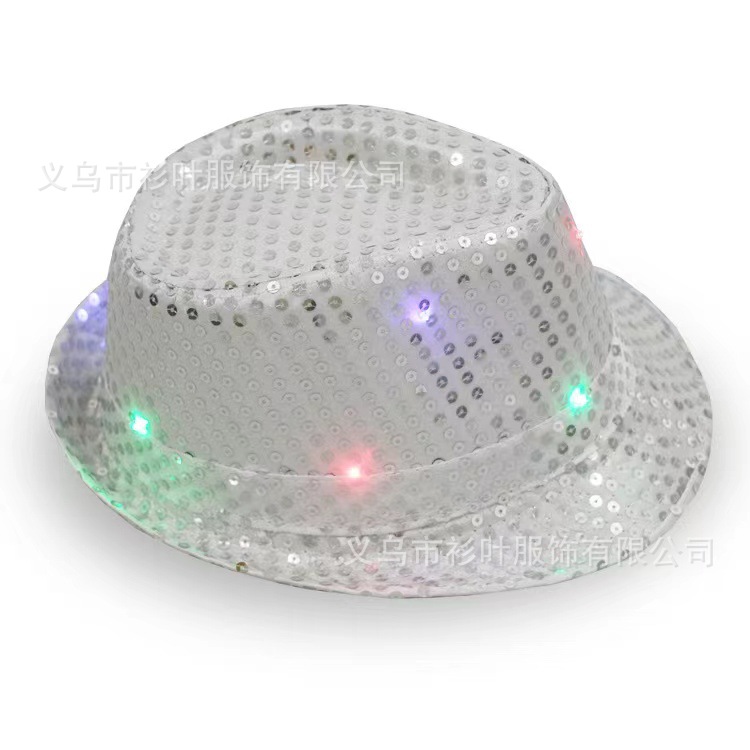 Детская сценическая джазовая шляпа с подсветкой, цилиндр, шляпа со светодиодными пайетками, светящаяся джазовая шляпа для выступления на сцене, шляпа-реквизит
