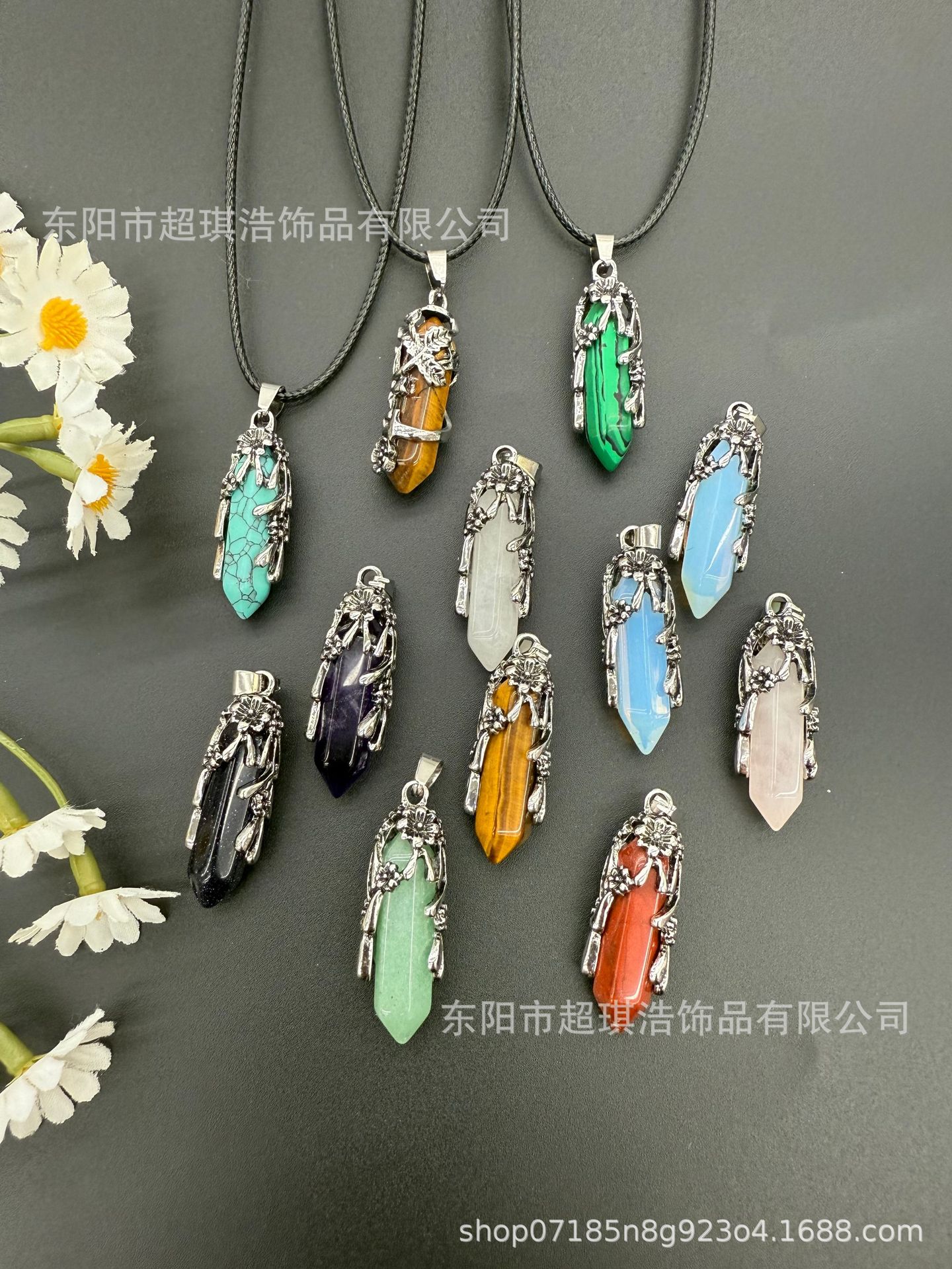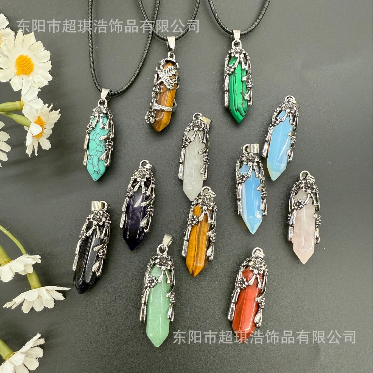 Натуральный камень, кристалл, шестиугольная колонна, лепесток, ожерелье, кулон, трансграничный хит продаж, популярные в Европе и Америке ювелирные изделия своими руками, аксессуары, прямые продажи