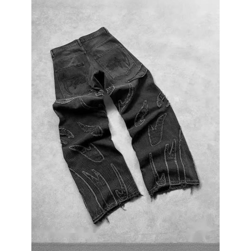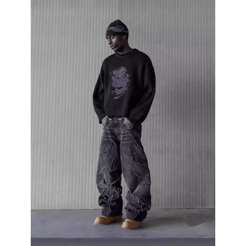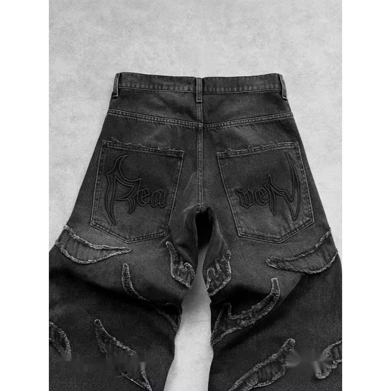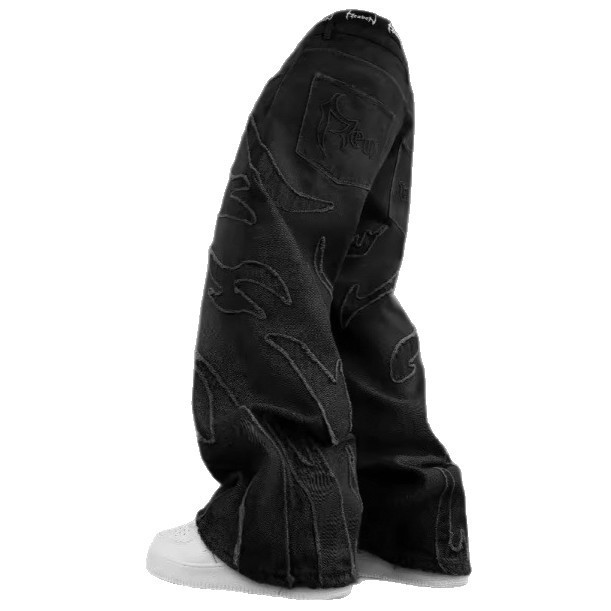 Джинсы с вышивкой в стиле хип-хоп, панк, Y2K, свободные джинсы в стиле ретро, мужские джинсы с высокой талией и узором в стиле ретро