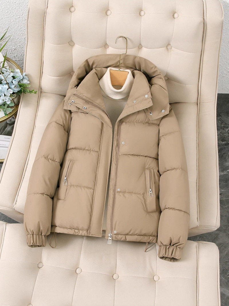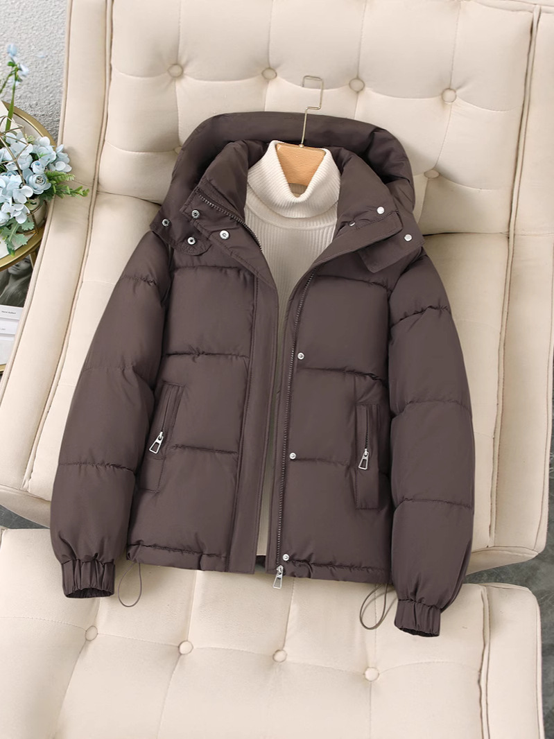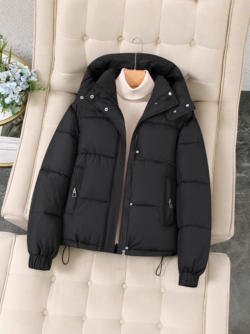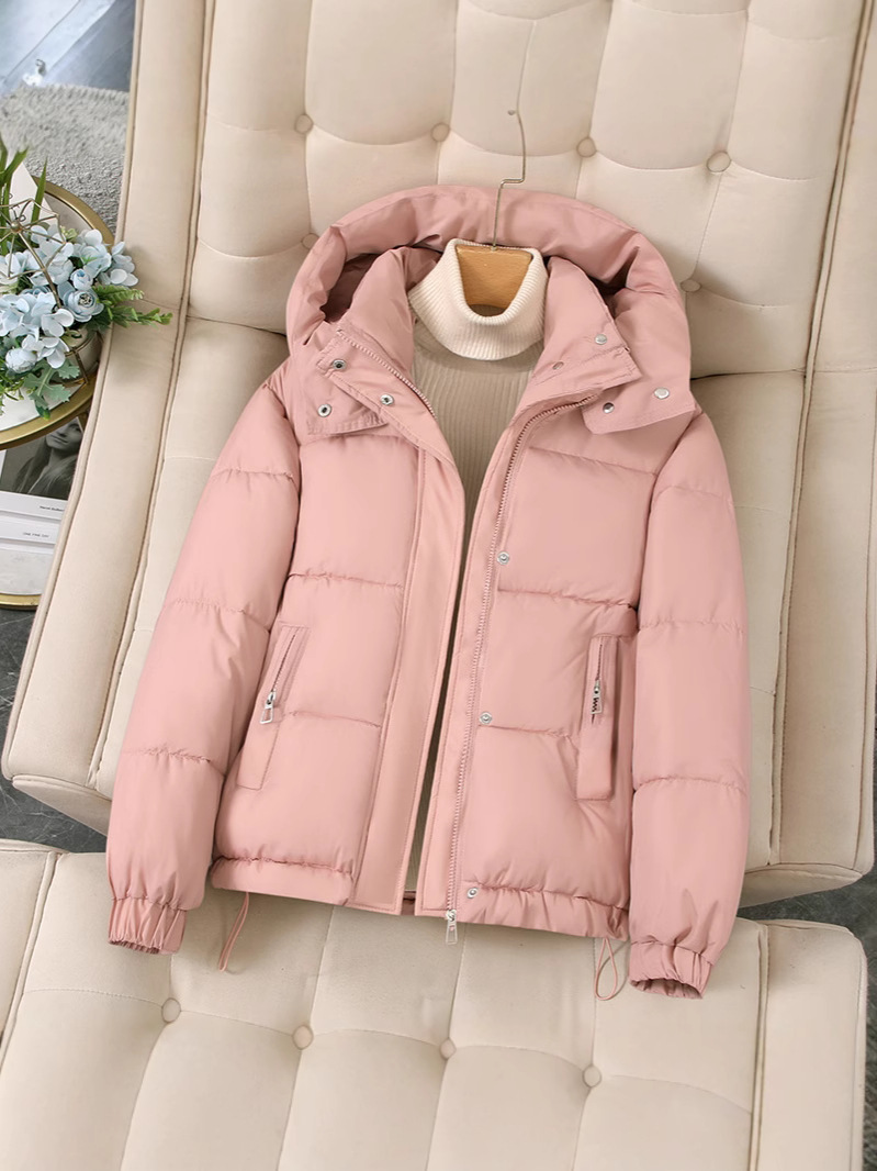 Женская короткая пуховая куртка из хлопка 2025, новая корейская версия, утепленное хлопковое пальто с капюшоном для миниатюрных, зимняя мода.