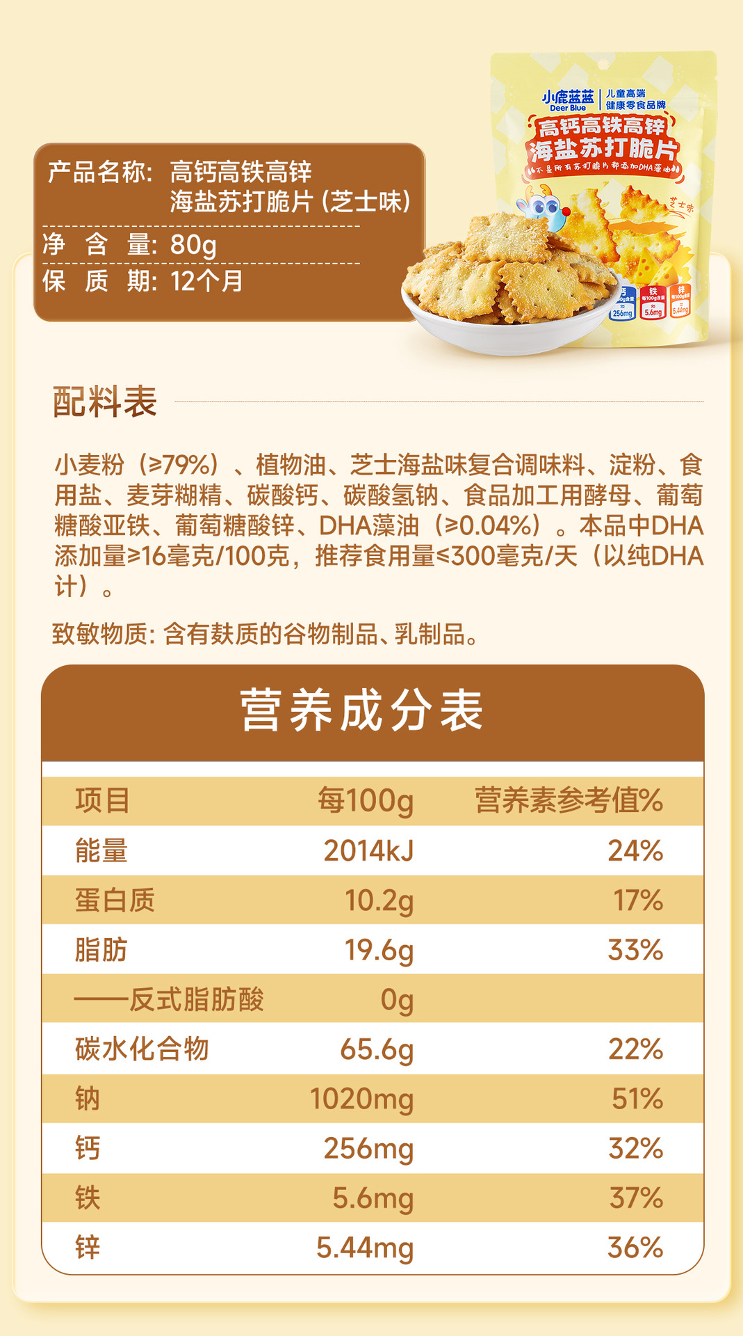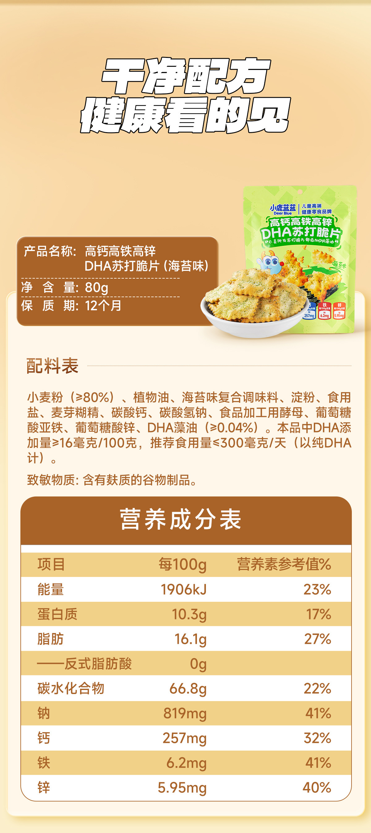 Little Deer Lanlan с высоким содержанием кальция, железа и цинка, содовые чипсы, крекеры, готовые к употреблению детские закуски, бренд