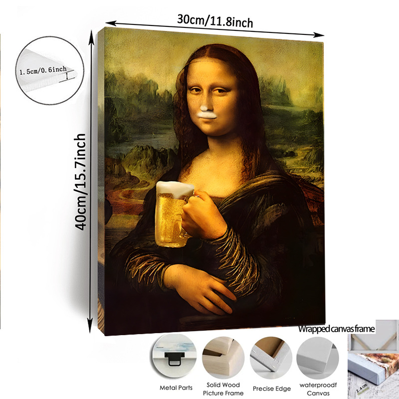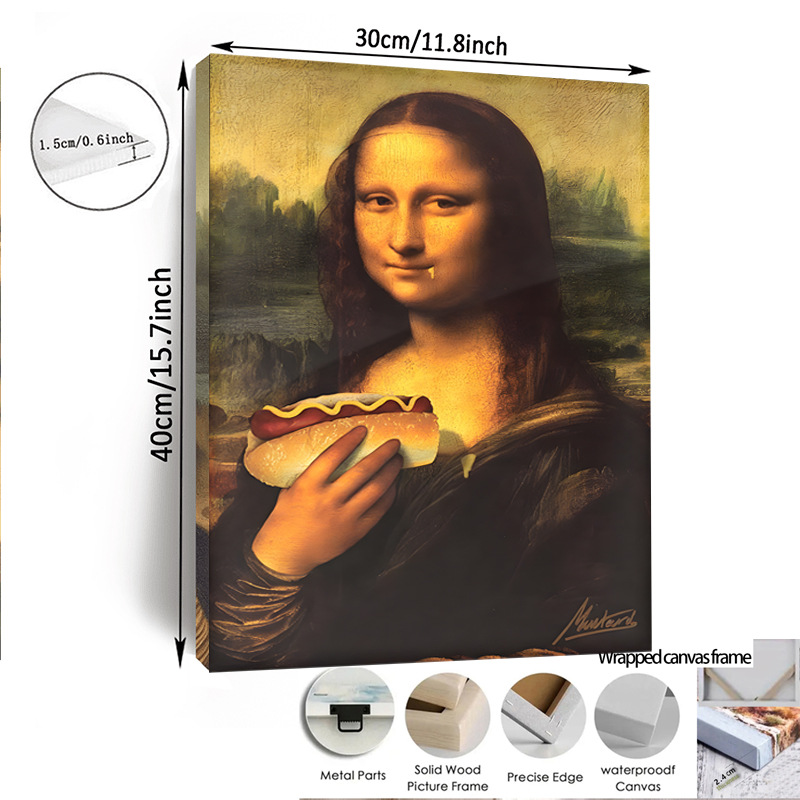 Забавная Мона Лиза, имитация масляной живописи, классическое шедевральное произведение искусства, юмор, искажение, деревянная рамка, украшение на стену