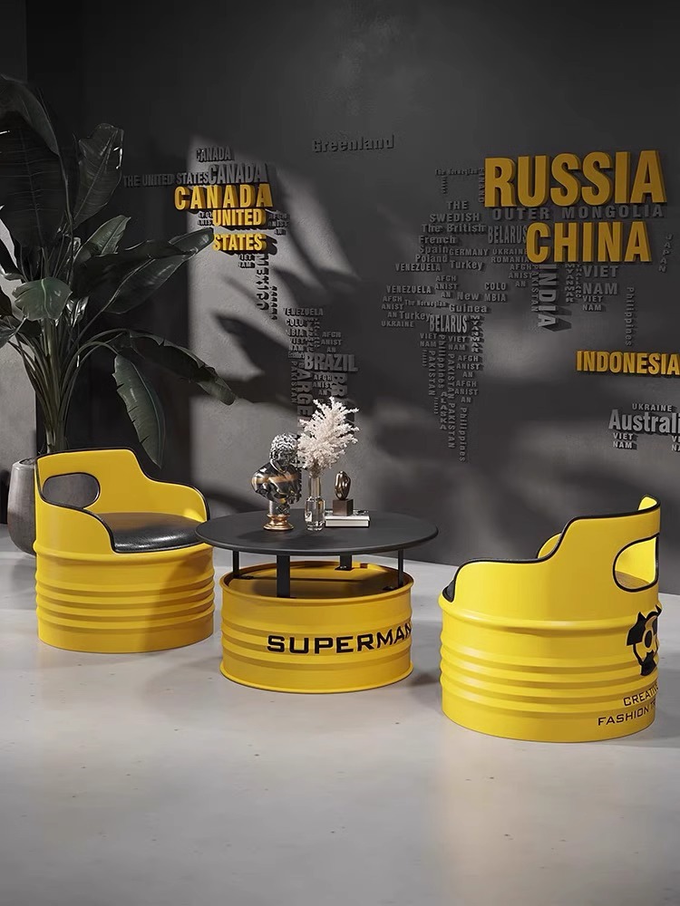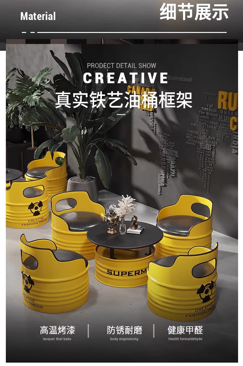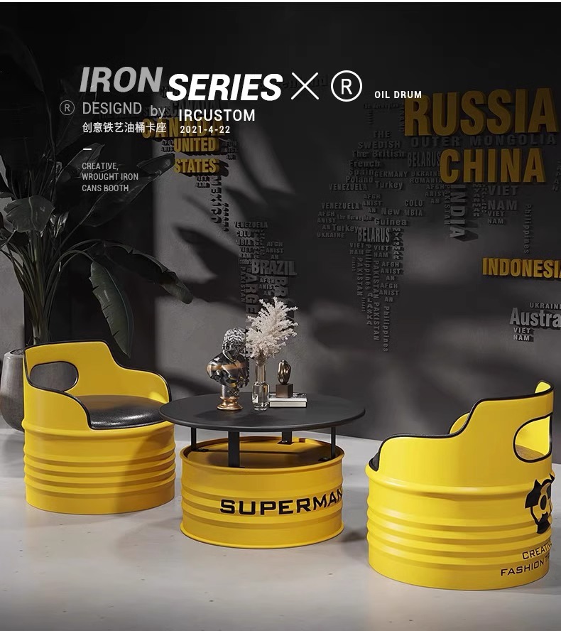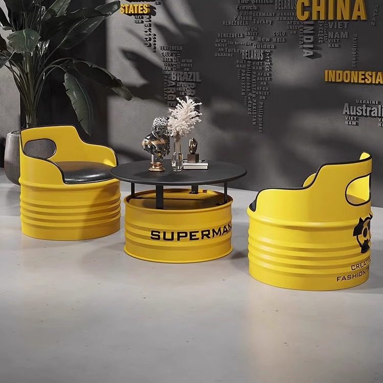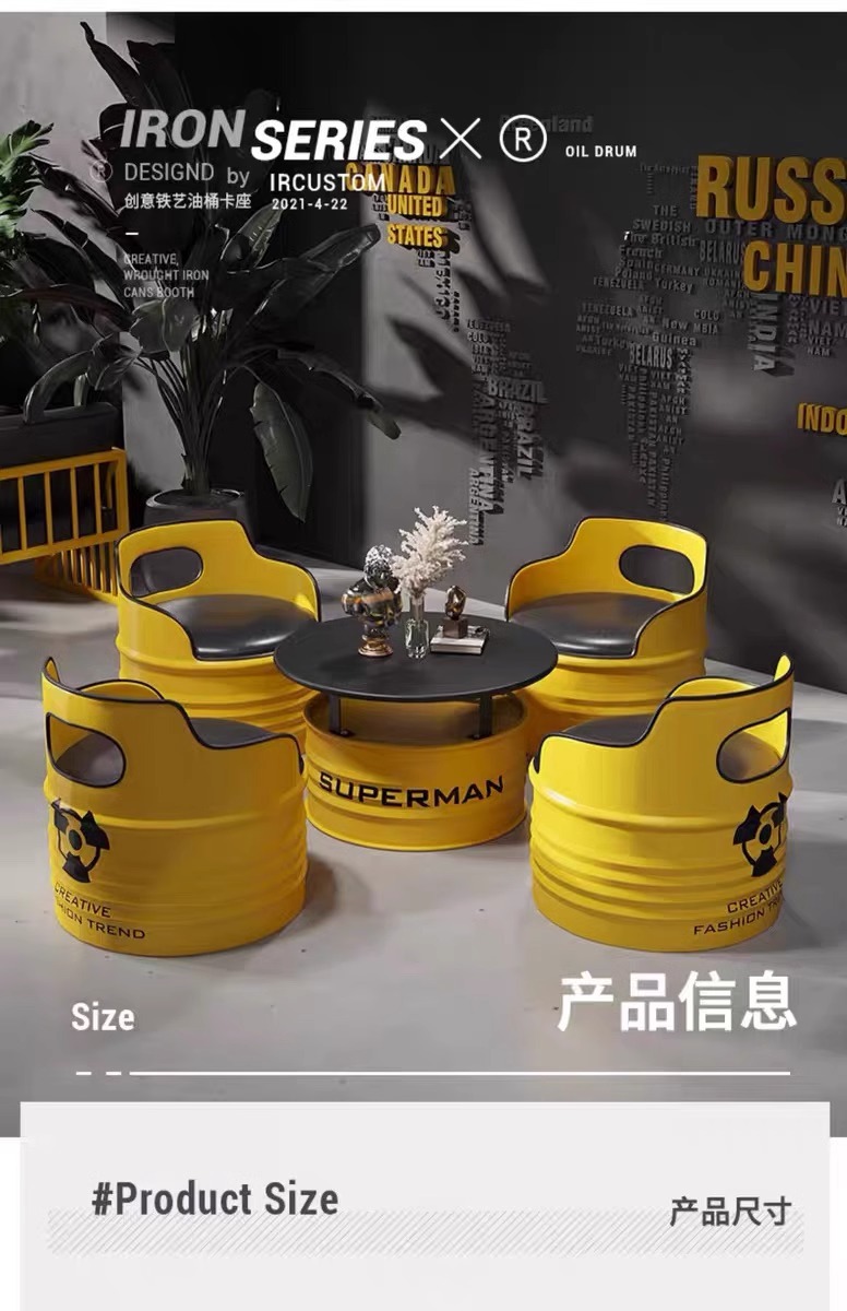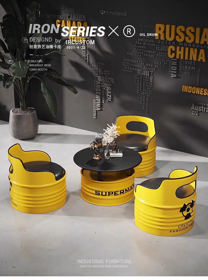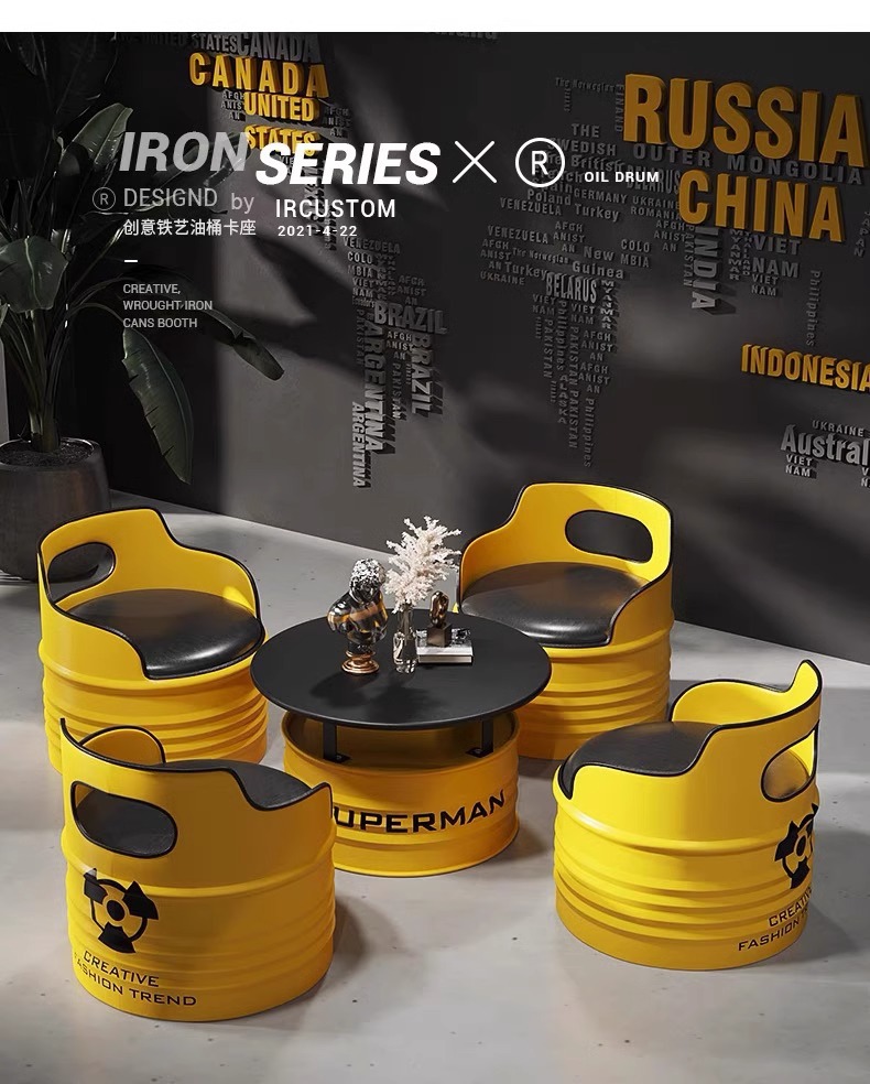 Модный диван-будка для магазина молочного чая, стол и стулья из кованого железа, кафе, зона ресепшн, стол и стулья в индустриальном стиле из масляных бочек для встреч.