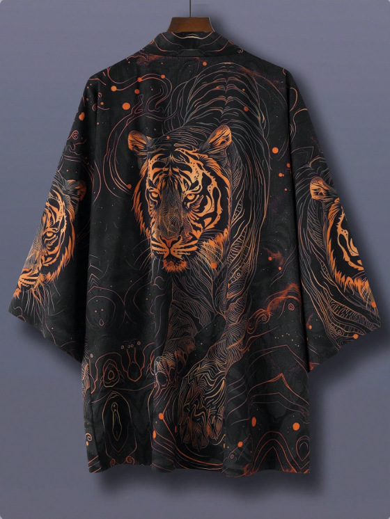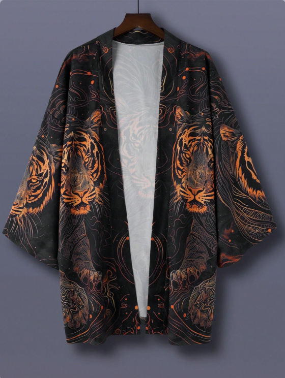 Кимоно хаори, кардиган, пара, верхняя тонкая куртка, европейская и американская уличная модная крутая свободная рубашка с принтом головы тигра, тонкая куртка