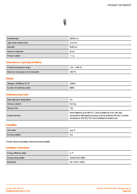 Галогенная лампа для духовки