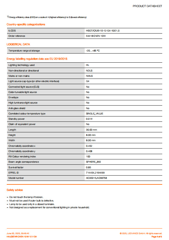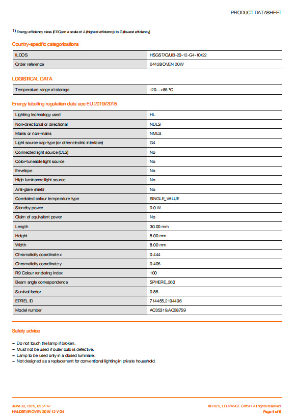 ХАЛОСТАР ДУХОВКА 10Вт 12В G4; ХАЛОСТАР ДУХОВКА 20Вт 12В G4
