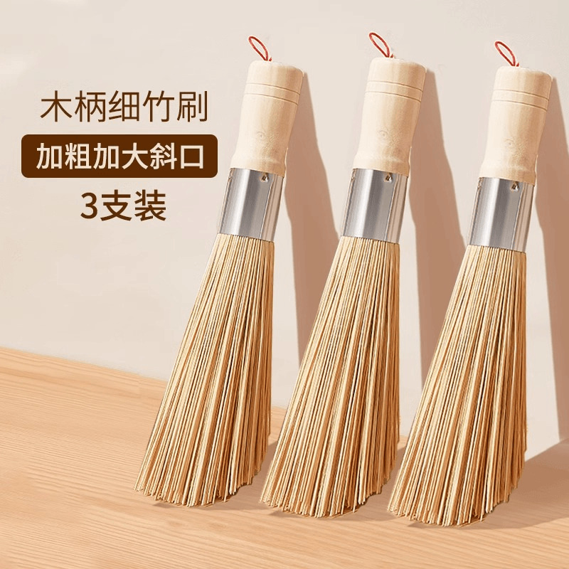 Старомодная щетка для бамбуковых кастрюль с деревянной ручкой ручной работы, кухонная щетка для чистки кастрюль, бамбуковая щетка для бытовой уборки, натуральная метла.