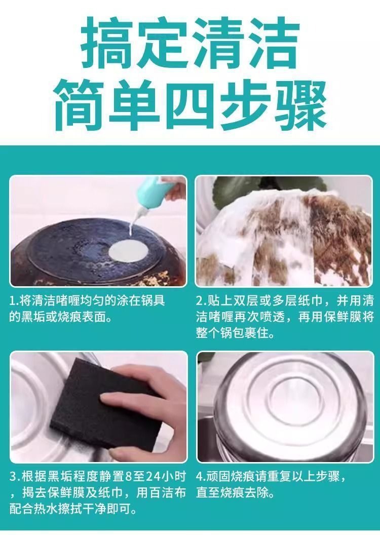 Очиститель из нержавеющей стали для мытья кастрюль с черной грязью, кухонными масляными пятнами, мощный гель для обеззараживания, для очистки дна кастрюли и удаления пятен ржавчины.