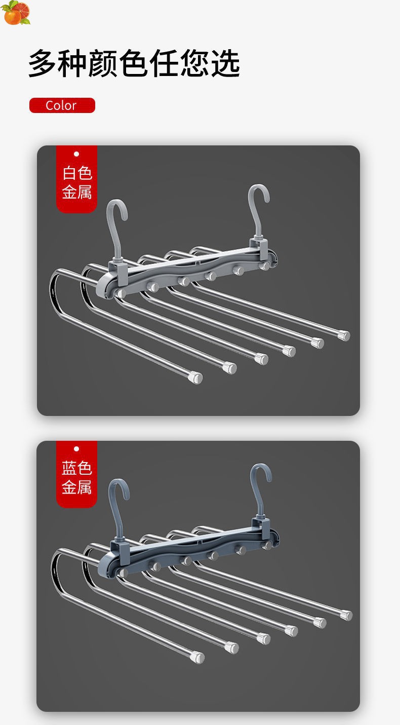 6-слойная противоскользящая вешалка для брюк из нержавеющей стали [белая] - 6-слойная нержавеющая сталь; 6-слойная противоскользящая вешалка для брюк из нержавеющей стали [синяя] - 6-слойная нержавеющая сталь; 6-слойная пластиковая противоскользящая вешалка для брюк [смешанные цвета] - 6-слойная нержавеющая сталь; Волшебная вешалка для брюк — 6 слоев нержавеющей стали.