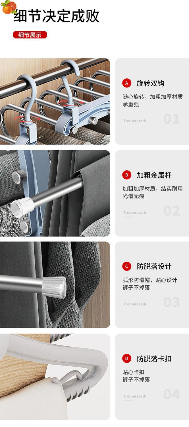 Многофункциональный зажим для брюк, многослойная стойка для хранения одежды из нержавеющей стали, телескопическая складная вешалка для брюк, вешалка для одежды для домашнего использования