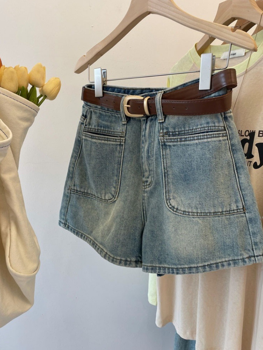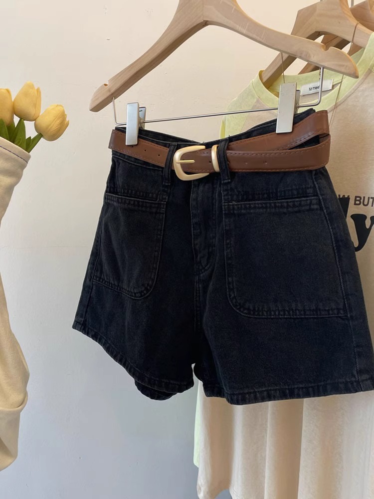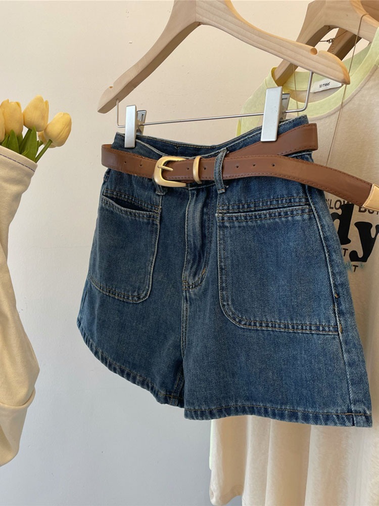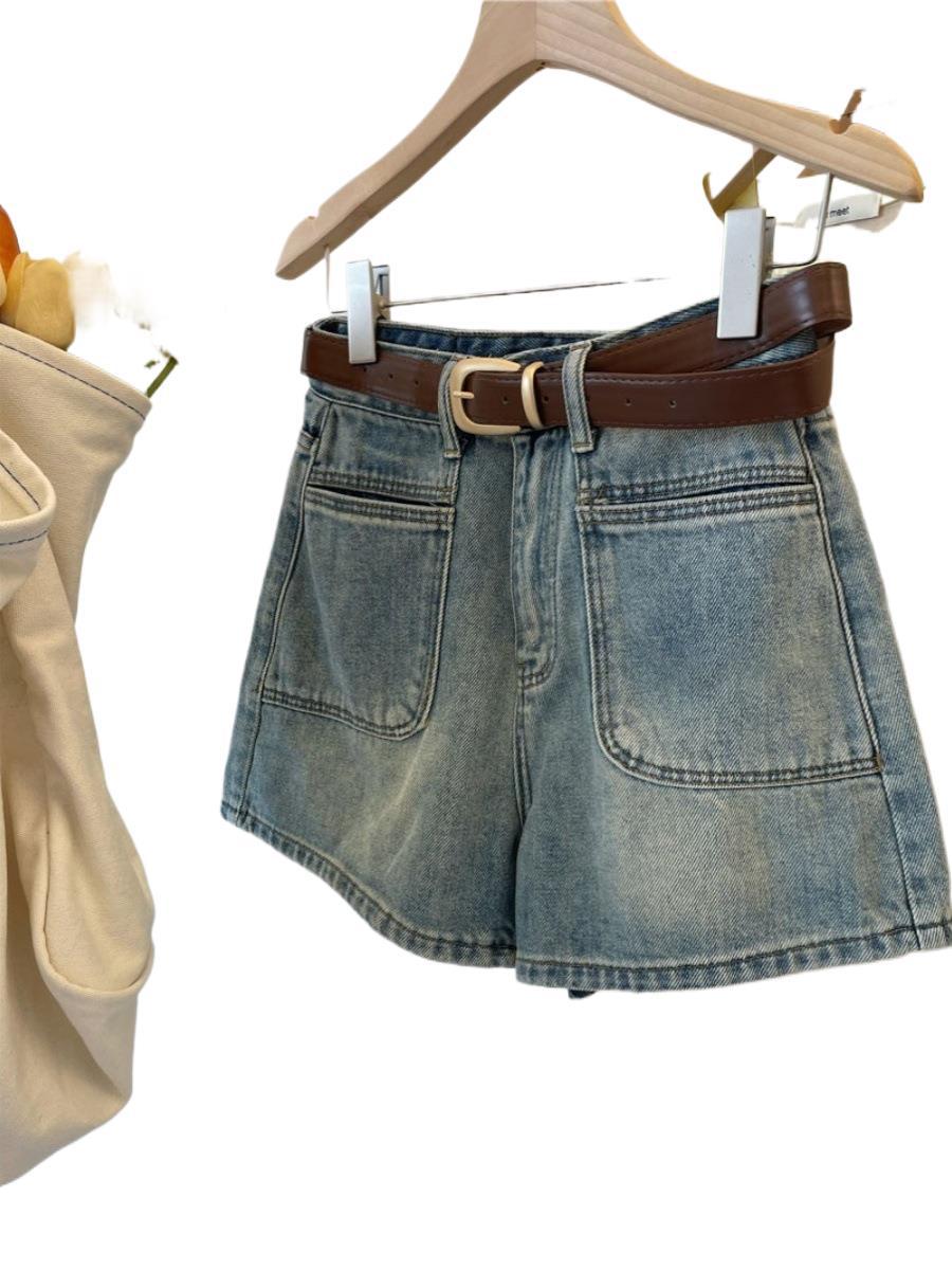 Летние новые ретро джинсовые шорты с высокой талией для женщин, утягивающие, плюс размер, свободные широкие шорты А-силуэта, модные шорты 2025 года