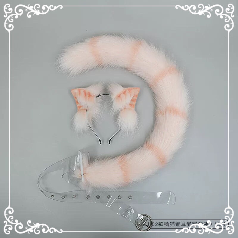 Большой толстый оранжевый кот, кошачьи уши, кошачий хвост, лолита, искусственные уши животного ручной работы, повязка на голову, набор аксессуаров для хвоста