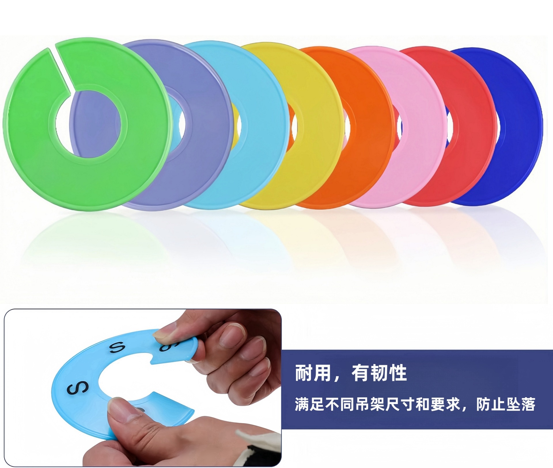 Цветные круглые пластиковые кольца-разделители для одежды, бирки с размерами, оптом, в наличии, разноцветные размерные кольца