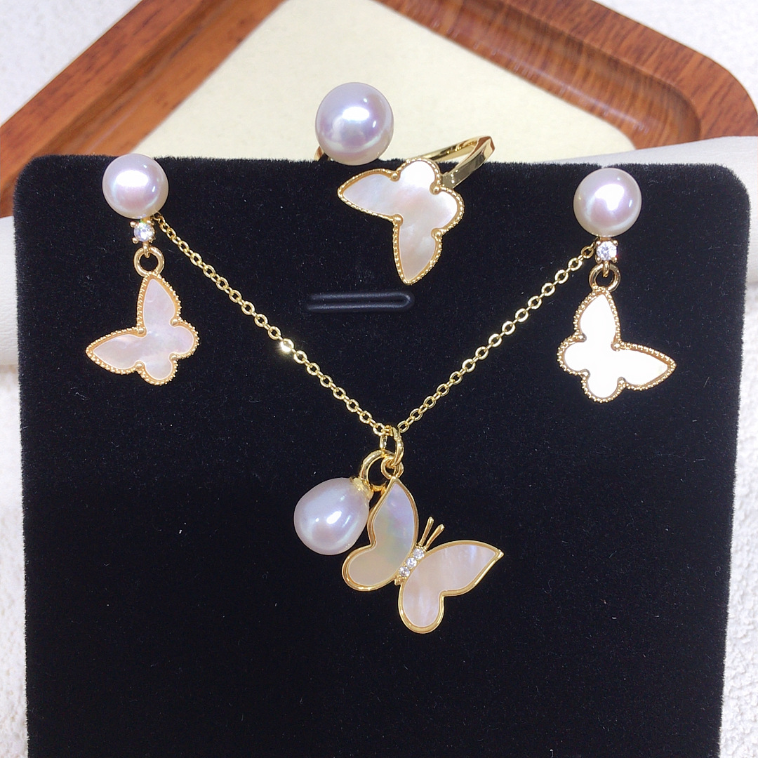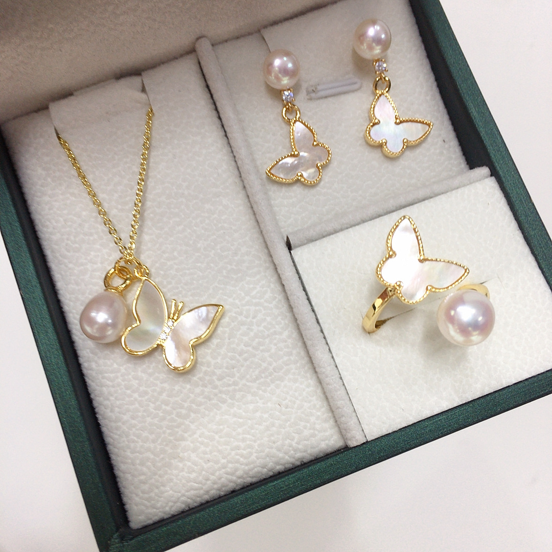 5A класс, высокоглянцевые безупречные натуральные морские ракушки, бабочка, пресноводный жемчуг, кулон, серьги, комплект колец, подарок, оптовая продажа, дропшиппинг