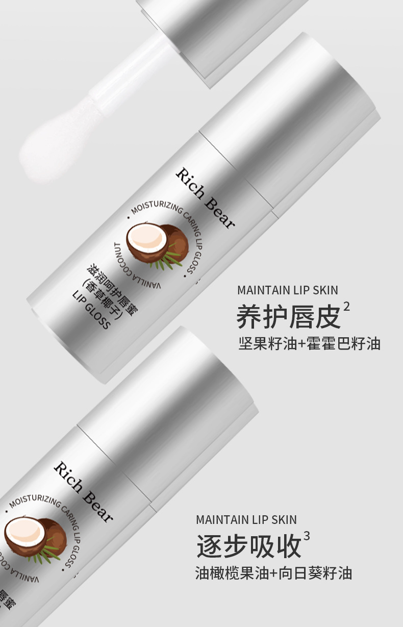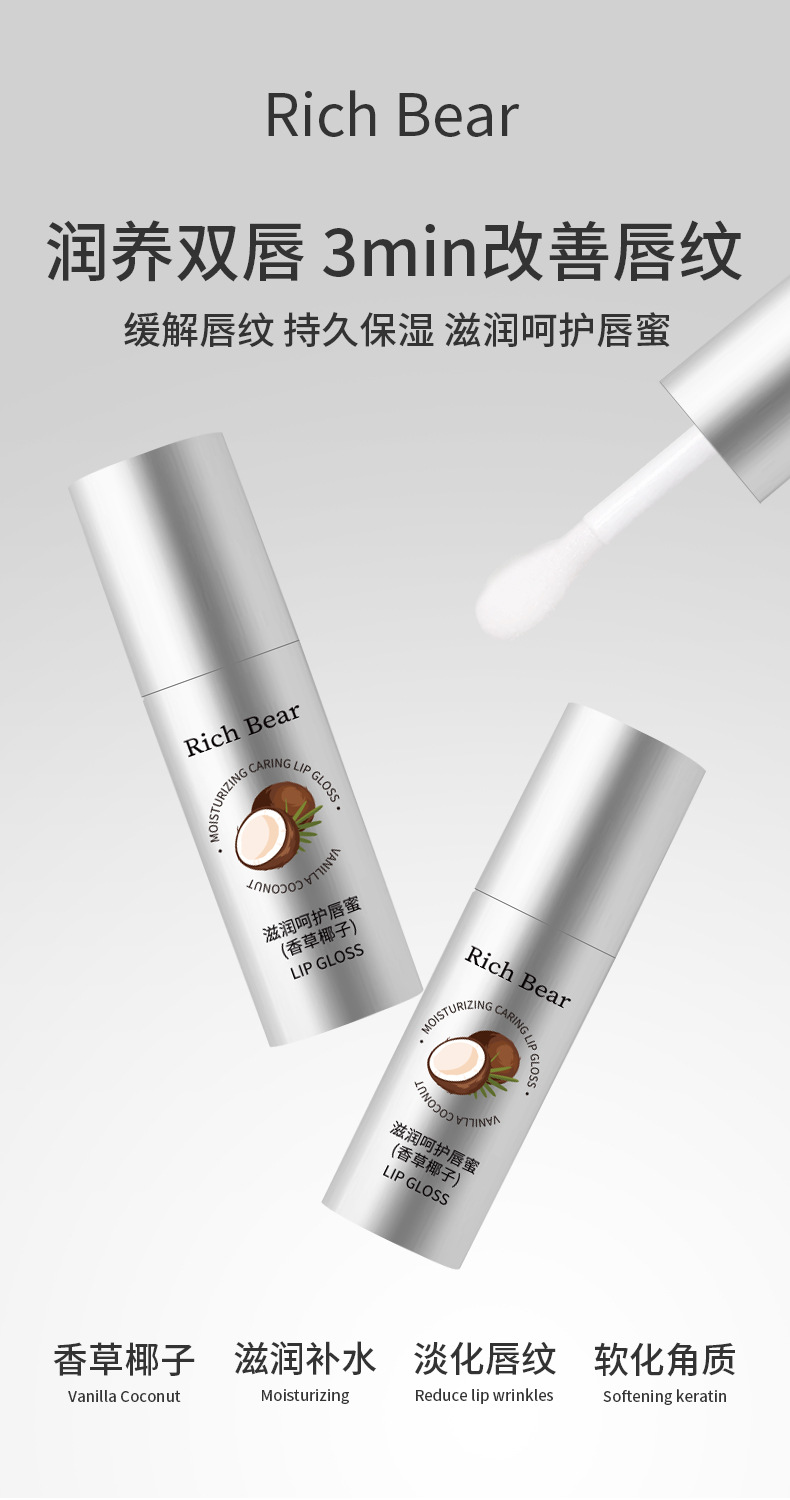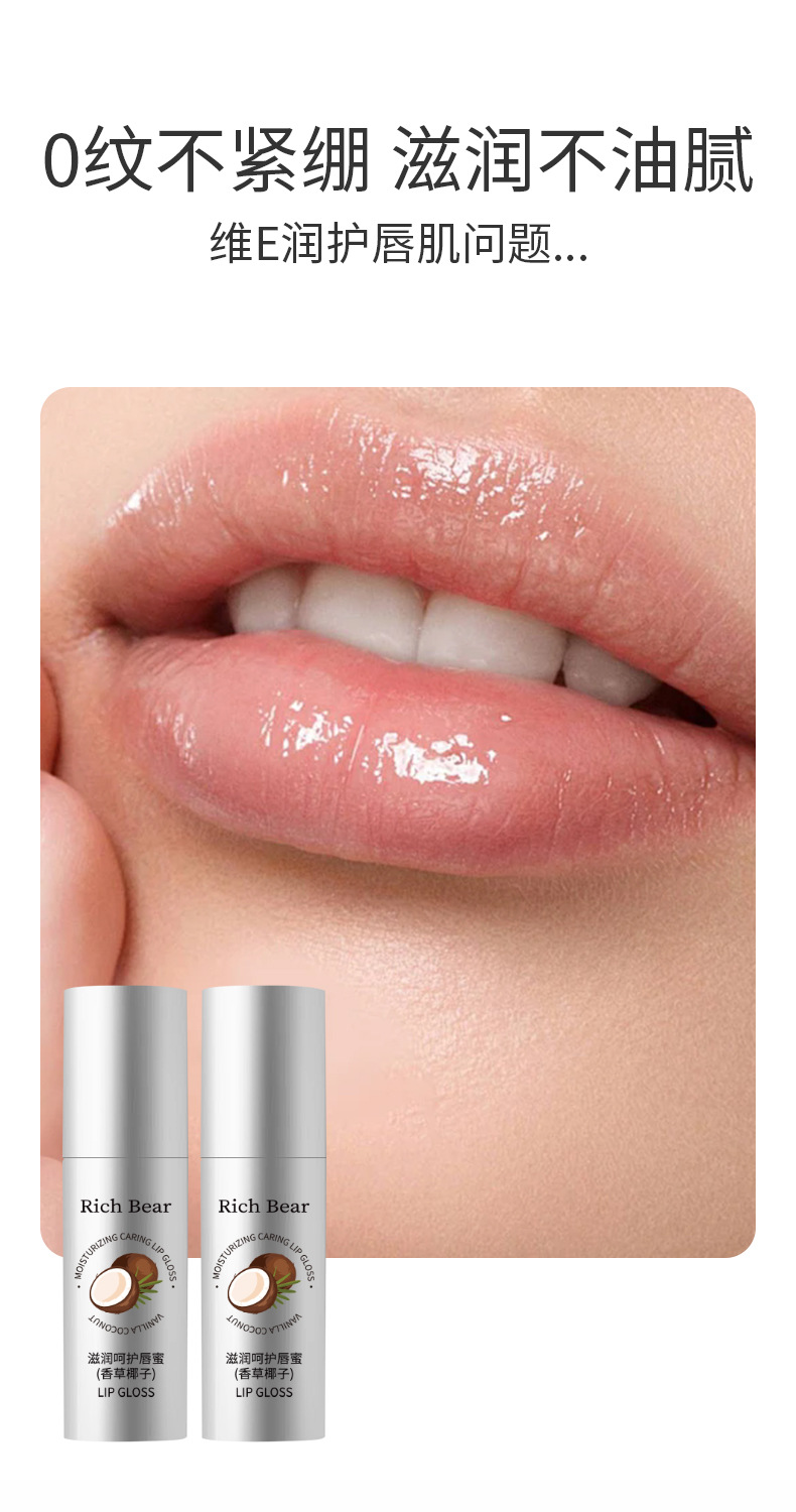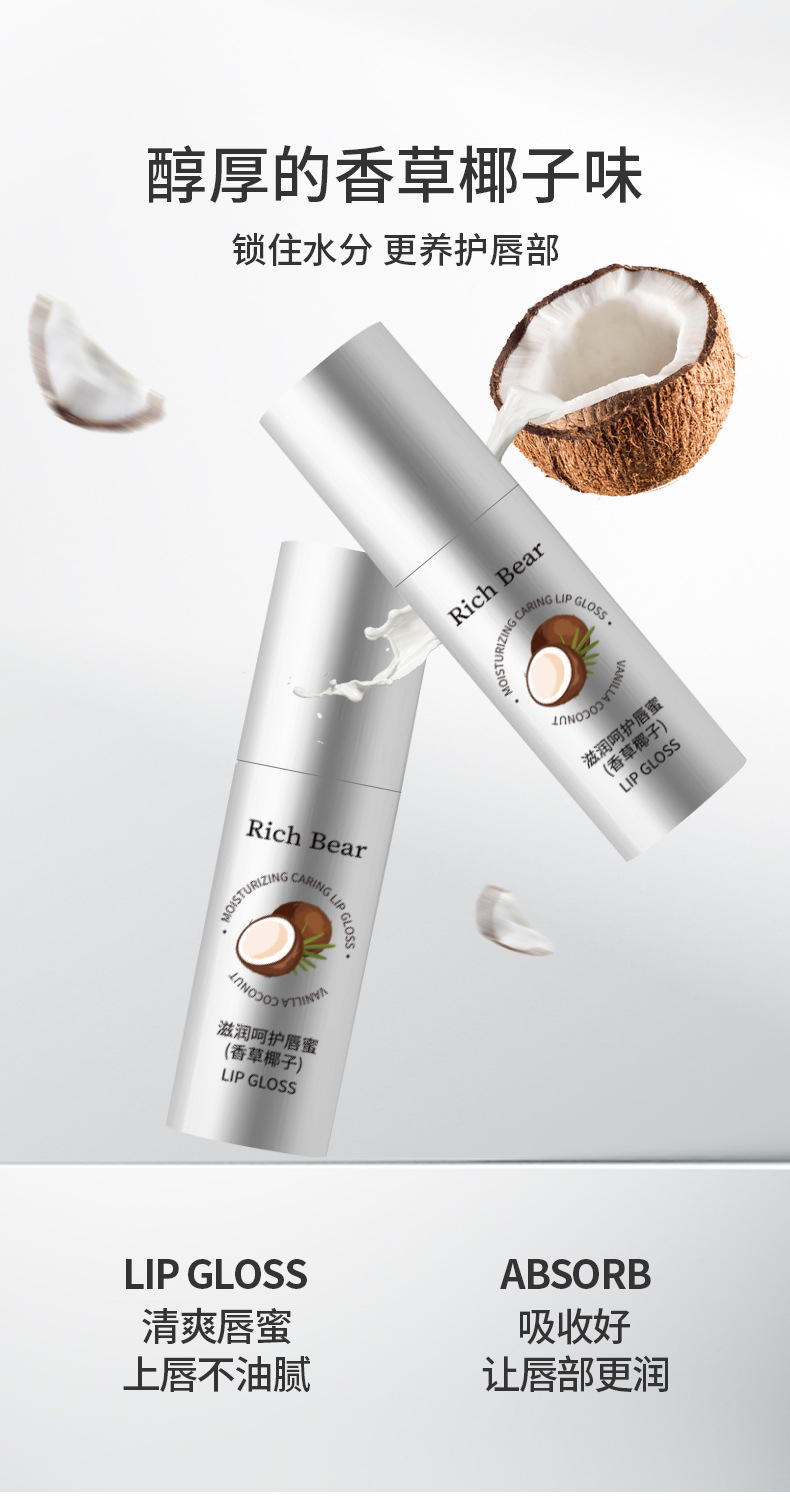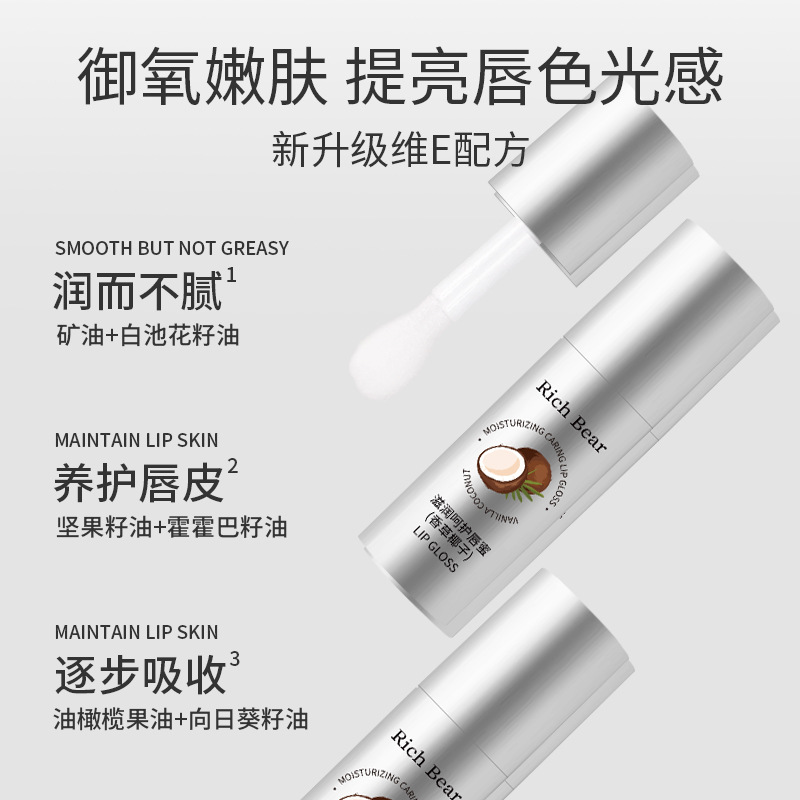 RichBear Увлажняющий кокосовый блеск для губ Водный глянцевый зеркальный увлажняющий бальзам для губ Уход Увлажняющее масло для губ Эссенция для замены волос