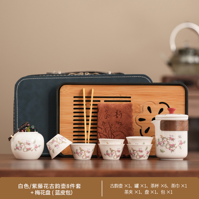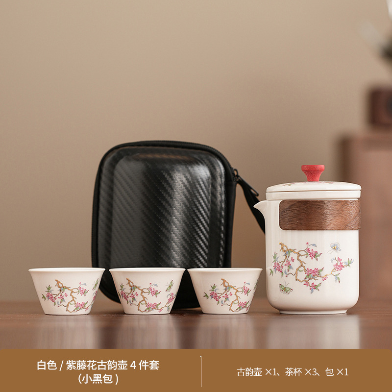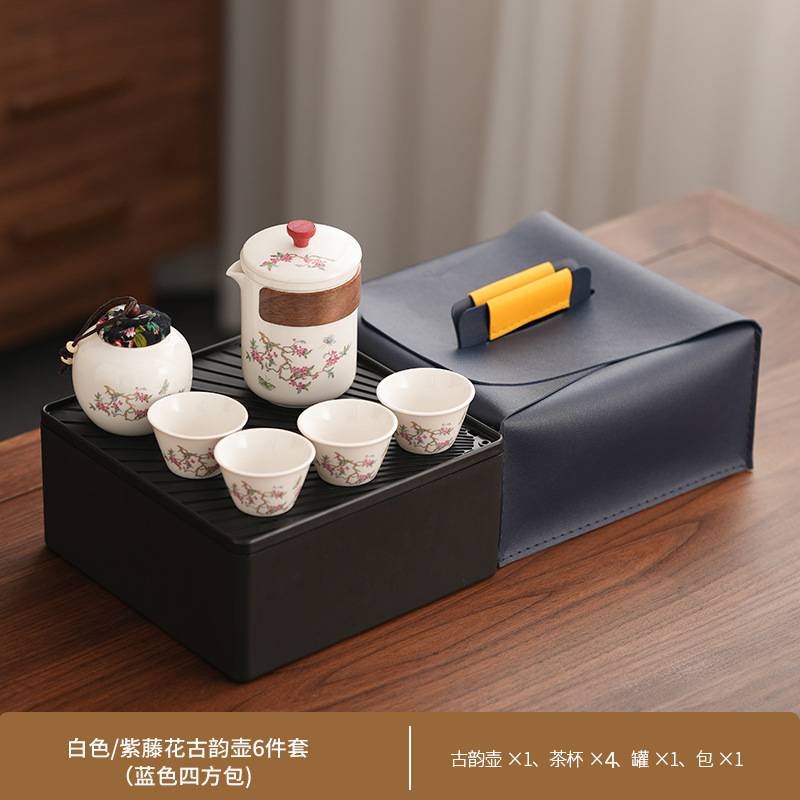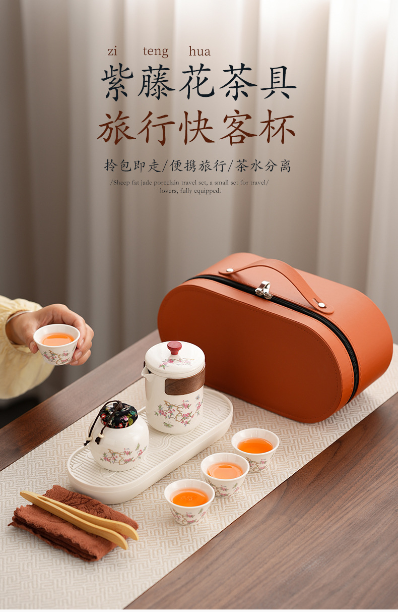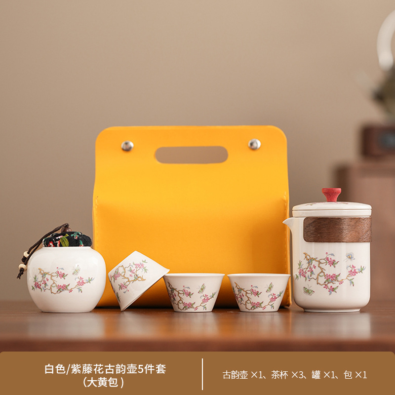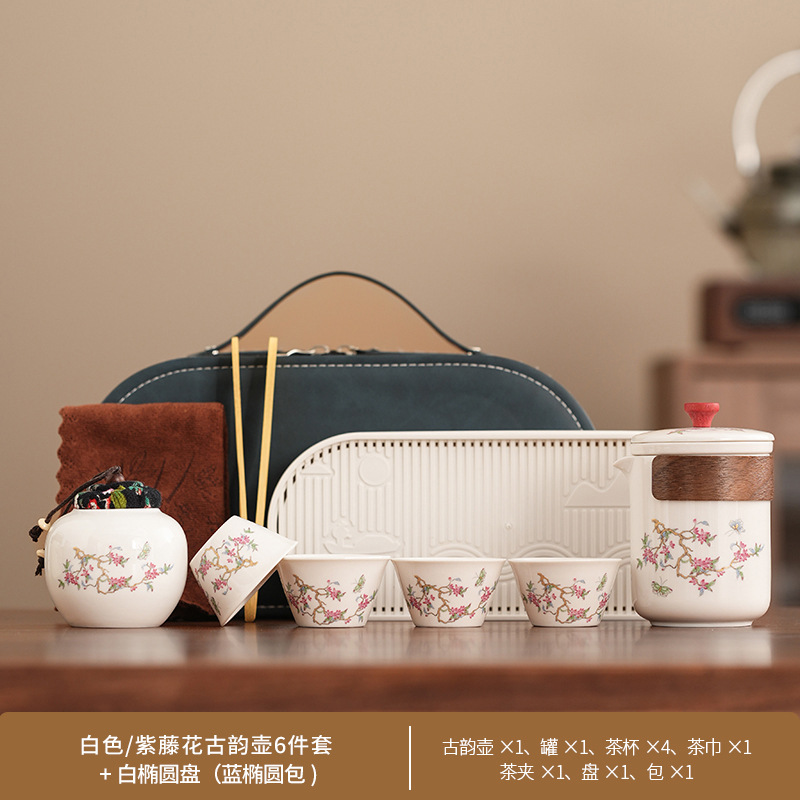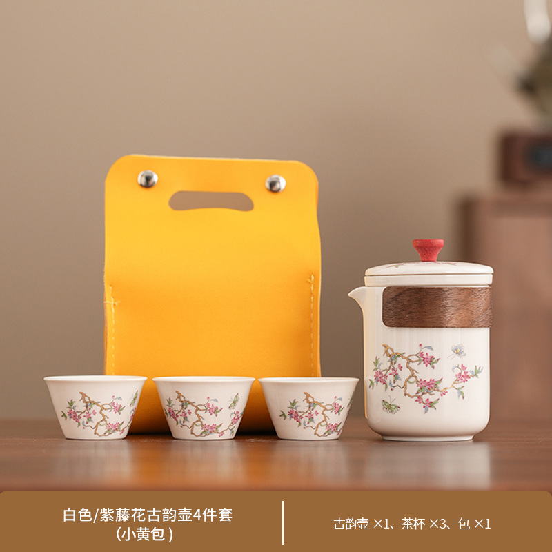 Набор для китайского чая в стиле кунг-фу, портативный, компактный, с цветком вистерии, для кемпинга на природе, быстрый заварной чайник, на заказ.