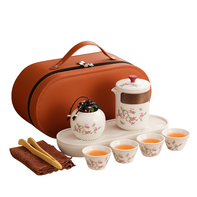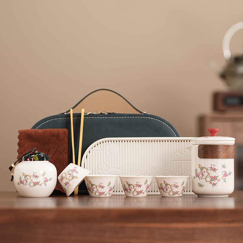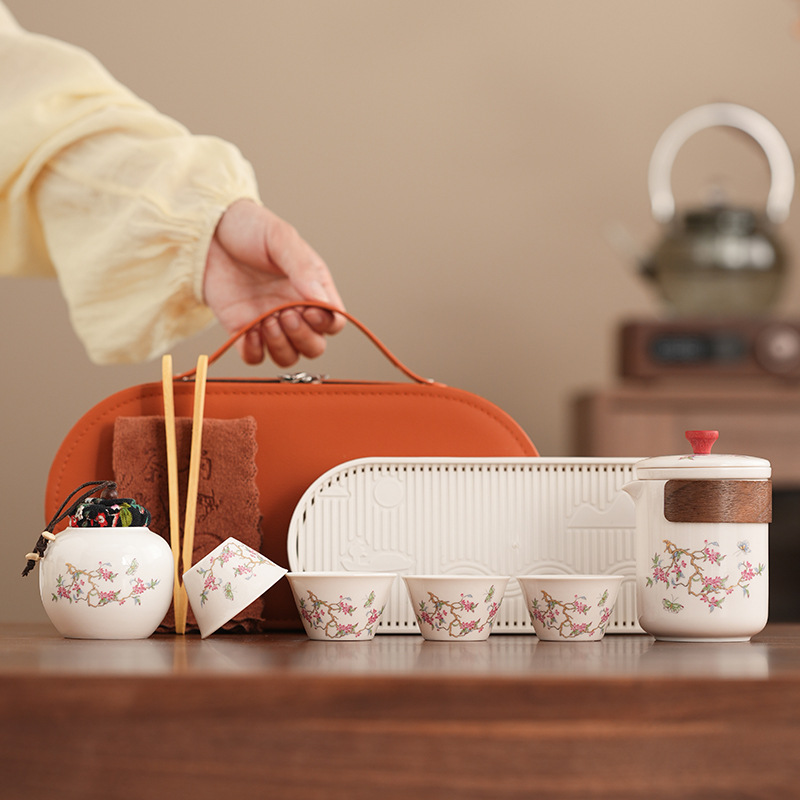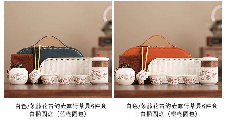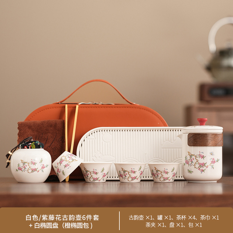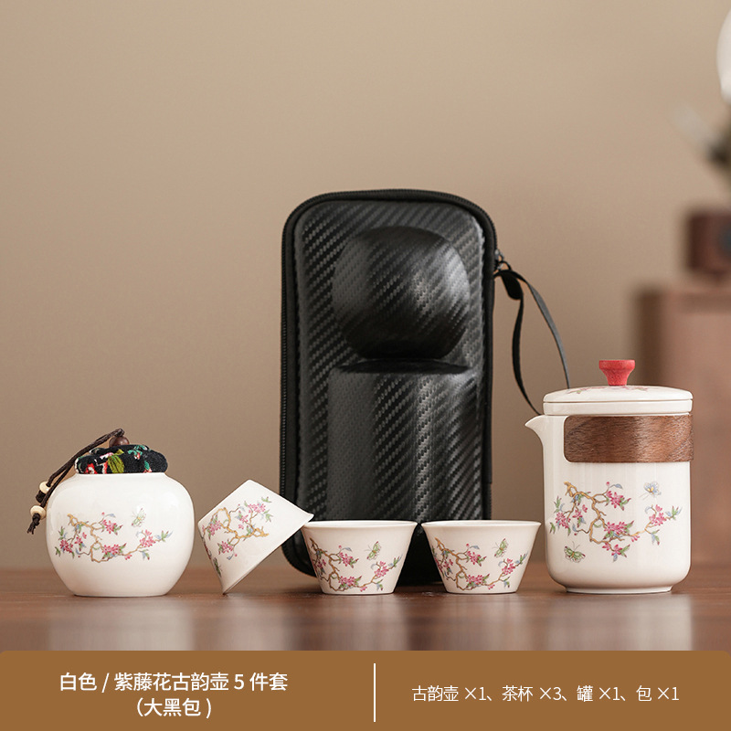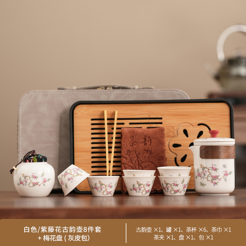 Набор для китайского чая в стиле кунг-фу, портативный, компактный, с цветком вистерии, для кемпинга на природе, быстрый заварной чайник, на заказ.